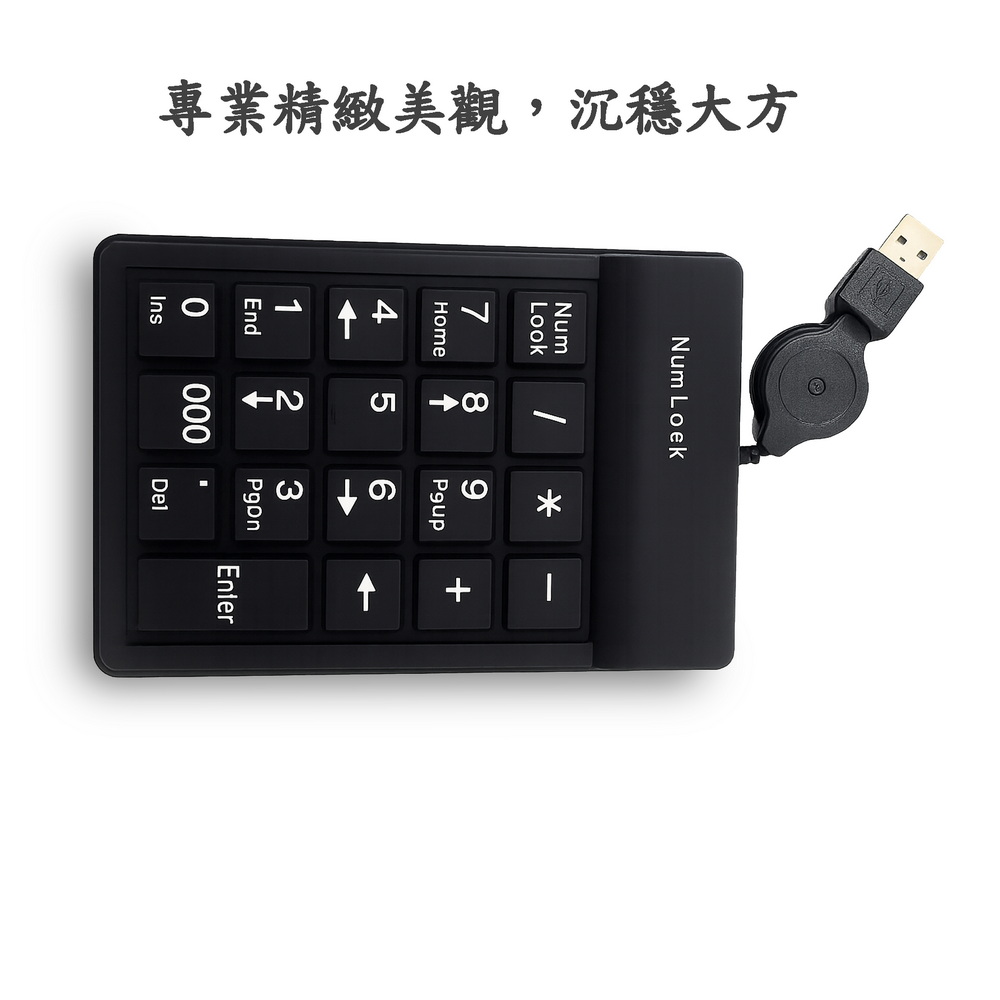 《商品介紹》數字輸入,快人一步小巧便攜,隨插即用靜音設計,專注不打擾辦公效率翻倍,輕鬆搞定資料伸縮線設計,告別纏繞即插即用,無需安裝驅動伸縮 USB 線,收納方便不打結輕薄便攜,外出辦公好幫手隨插即用 Plug & Play,不需要安裝驅動程式輕薄便攜,外出辦公好幫手。USB伸縮線設計,不怕纏繞。耐用設計,長時間使用不卡鍵,快速數字輸入,效率提升 200%。輕盈設計,隨身攜帶無負擔。筆電輸入好幫手,資料處理更高效。數字輸入更快,省時省力不只是鍵盤,更是你的效率神器。