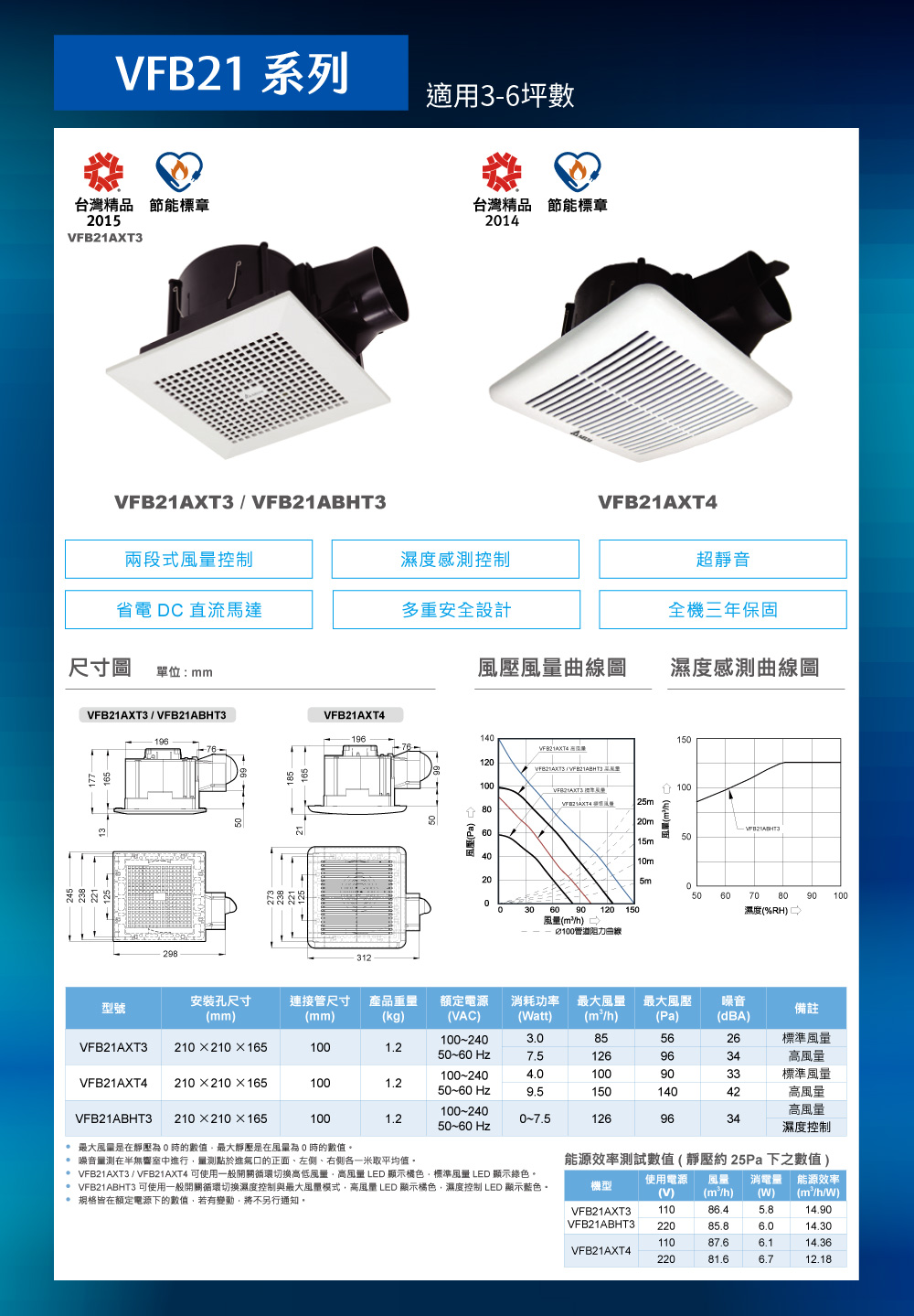【台達電子】3-6坪 兩段式風量控制 超靜音 節能換氣扇 DC直流 三年保固(VFB21AXT3)