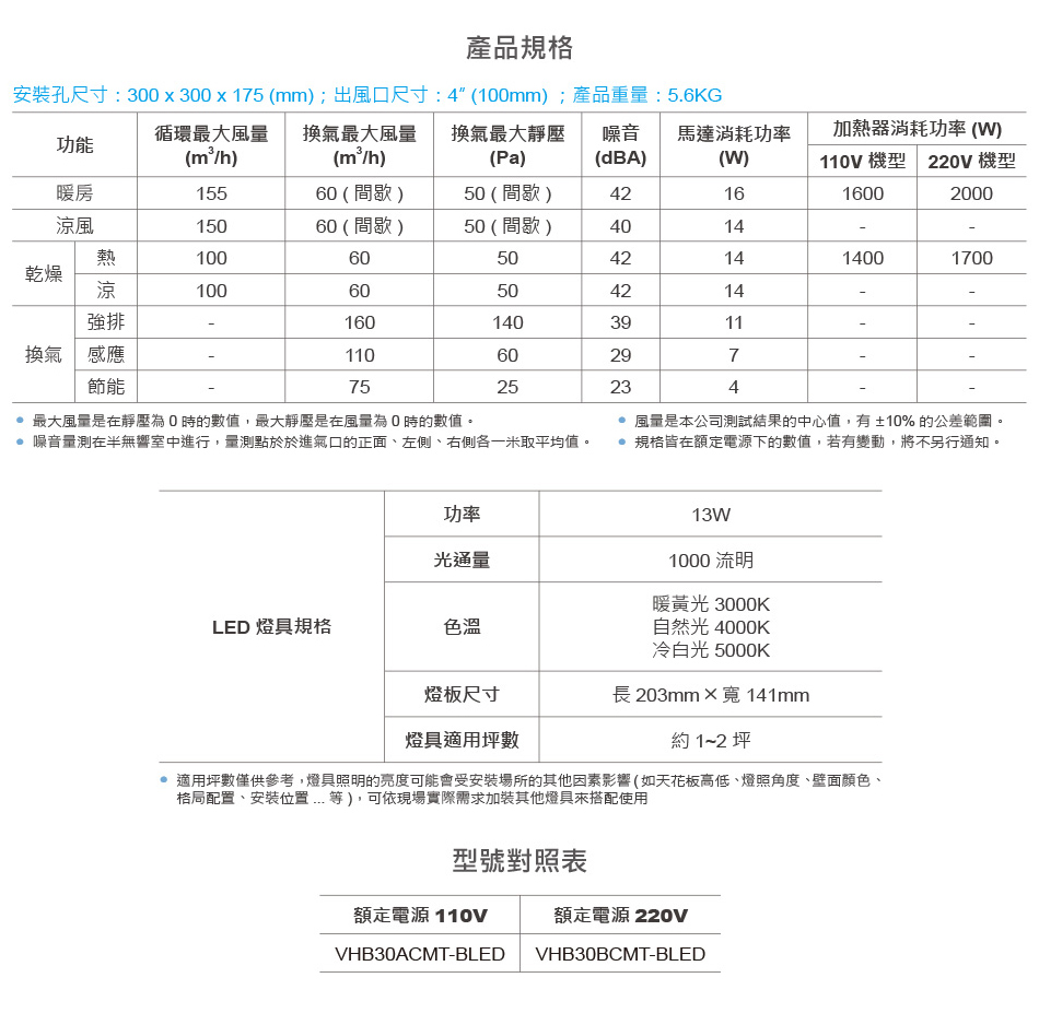 【台達電子】3-6坪 豪華300系列 線控 LED照明多功能循環涼暖風機 110V/220V 三年保固 (VHB30ACMT-BLED/VHB30BCMT-BLED)