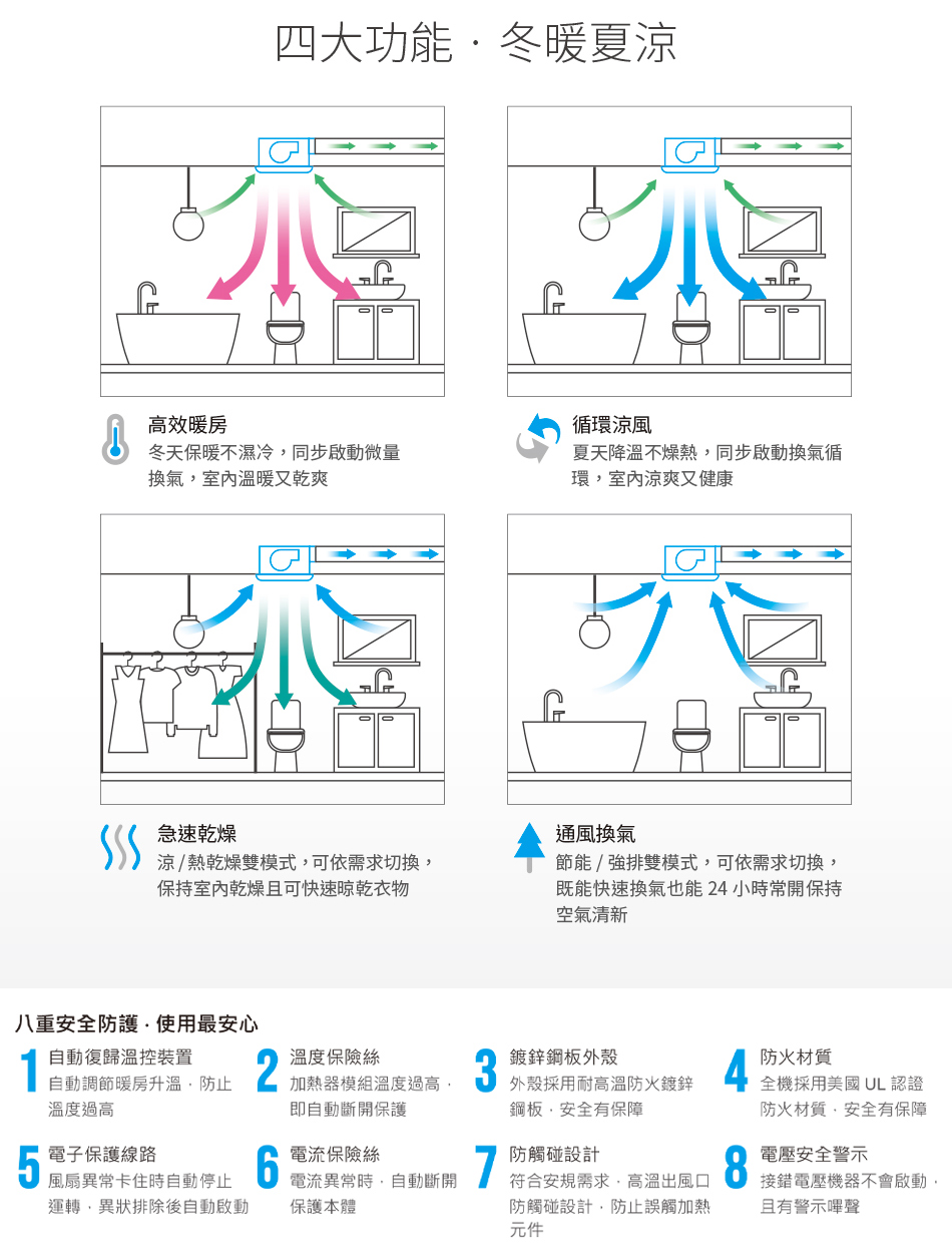 ⭐獨家創新專利出風口⭐IPX5防潑水等級LED燈板⭐暖房/涼風/乾燥/換氣/LED照明