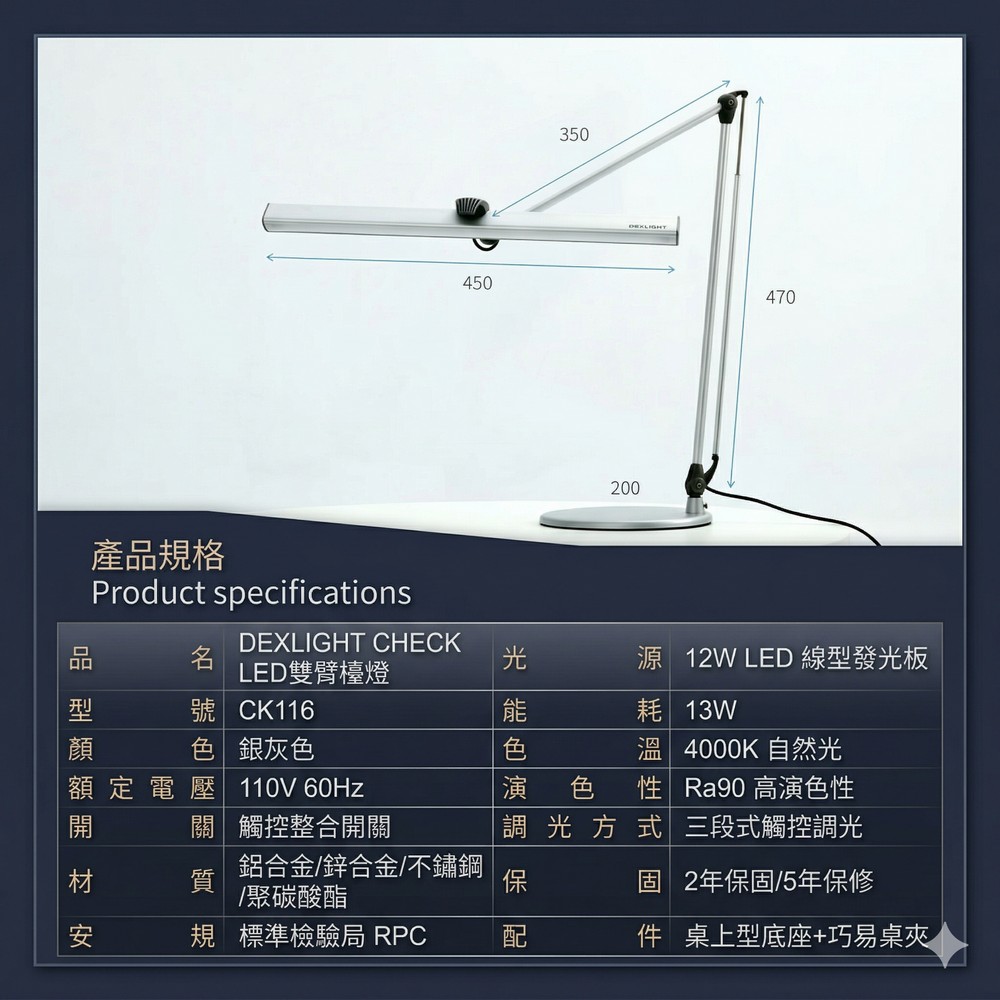 CHECK LED雙臂可調光檯燈