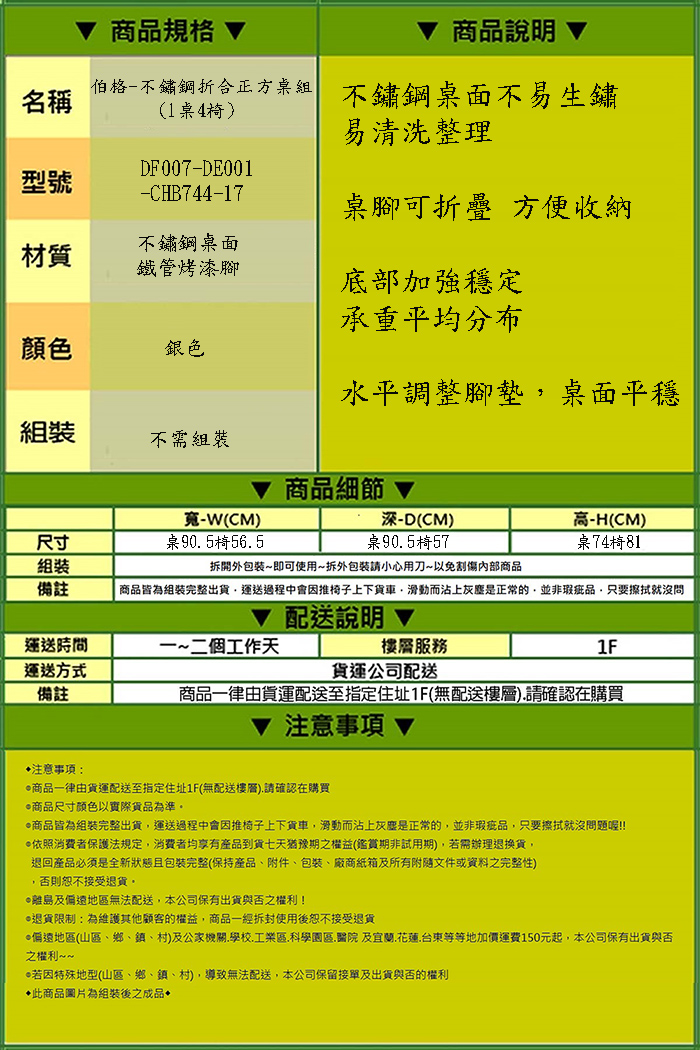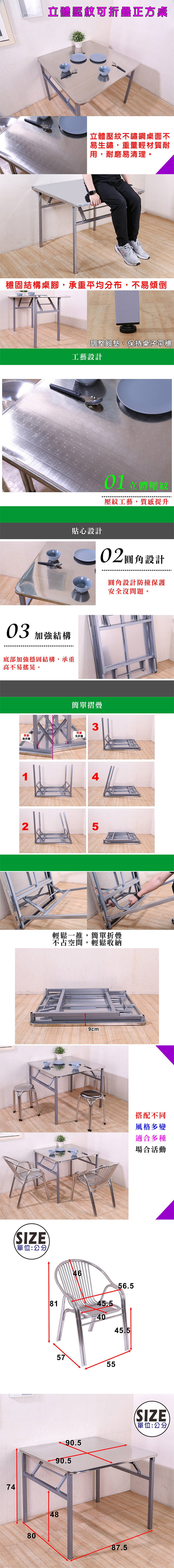 ‧商品名稱:《DFhouse》伯格-不鏽鋼折合正方桌 (1桌4椅)摺疊桌 餐桌