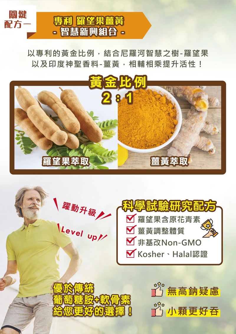 素食界的靈活之星 健康維持、行動加值 ✅好關鍵專利 羅望果薑黃日本專利 橄欖果實 ✅不卡卡有機硫源 MSM95% 透明質酸鈉 ✅好固力維生素D3專利維生素K2食用方法 : 每日1~2粒,建議餐後食用注意事項 : 避免睡前食用,孕婦、哺乳婦女請先諮詢醫師意見後食用保存方法 : 請保存於室溫乾燥避光處。