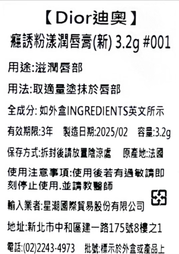 迪奧 癮誘粉漾潤唇膏(新)#001