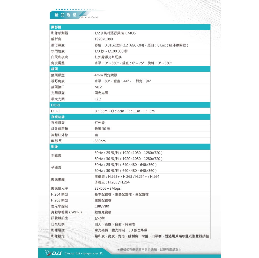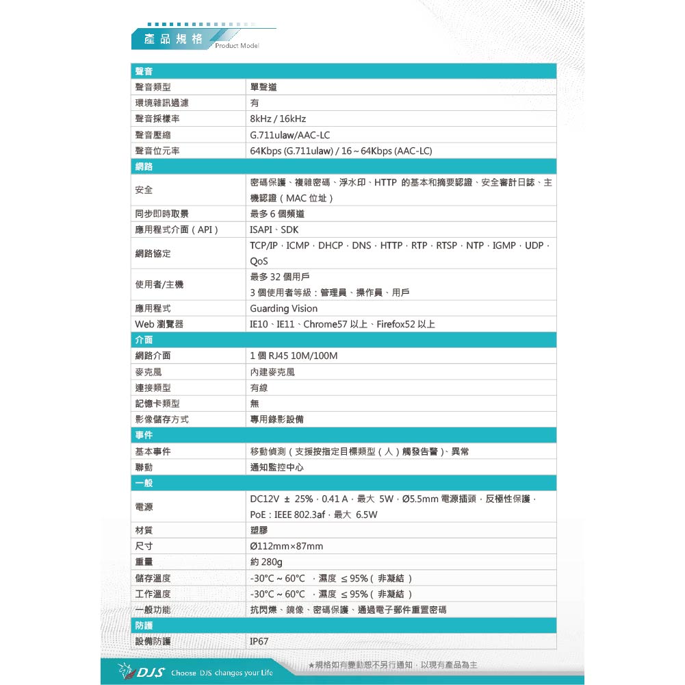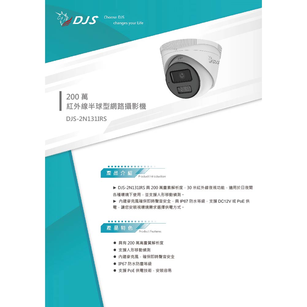 昌運監視器 DJS-2N131IRS 200萬紅外線半球型網路攝影機 內建麥克風