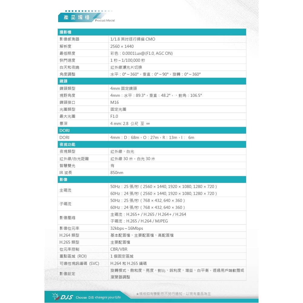 昌運監視器 DJS-4N107CLS-S 超星光全彩400萬智慧雙光槍型網路攝影機 智慧雙光功能 內建麥克風