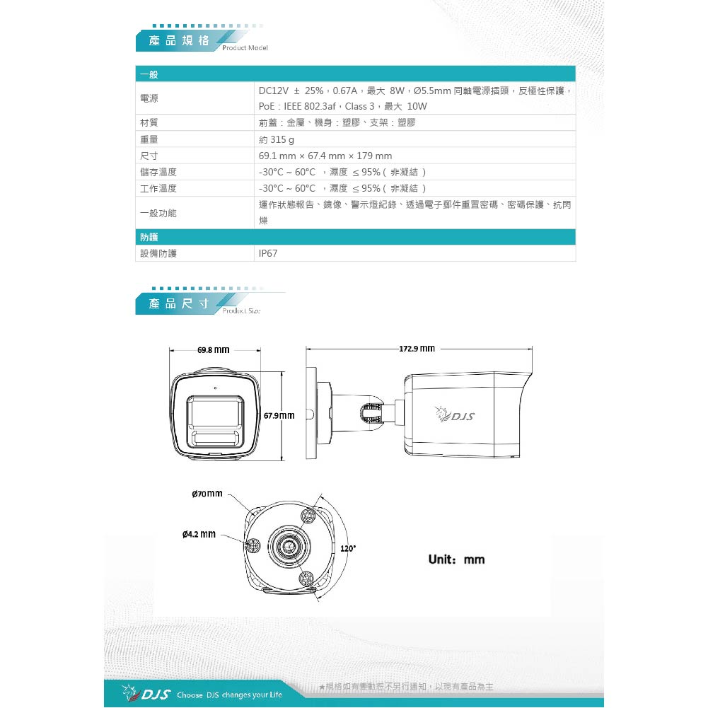 昌運監視器 DJS-2N103LS 200萬智慧雙光槍型網路攝影機 智慧雙光功能 內建麥克風