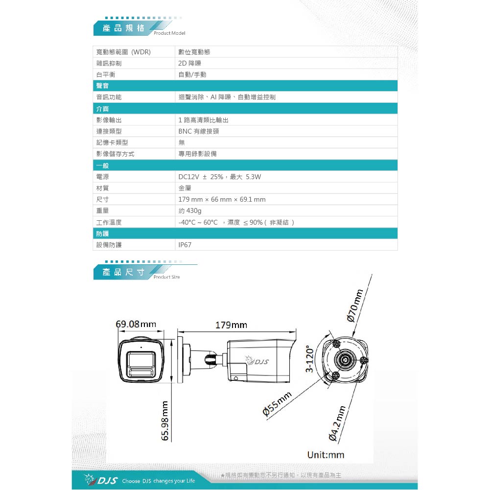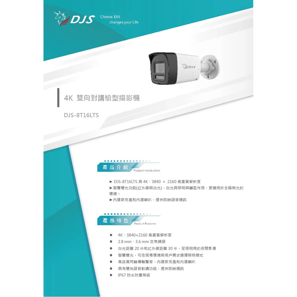 昌運監視器 DJS-8T16LTS 4K 雙向對講槍型攝影機 智慧雙光功能 內建麥克風和喇叭