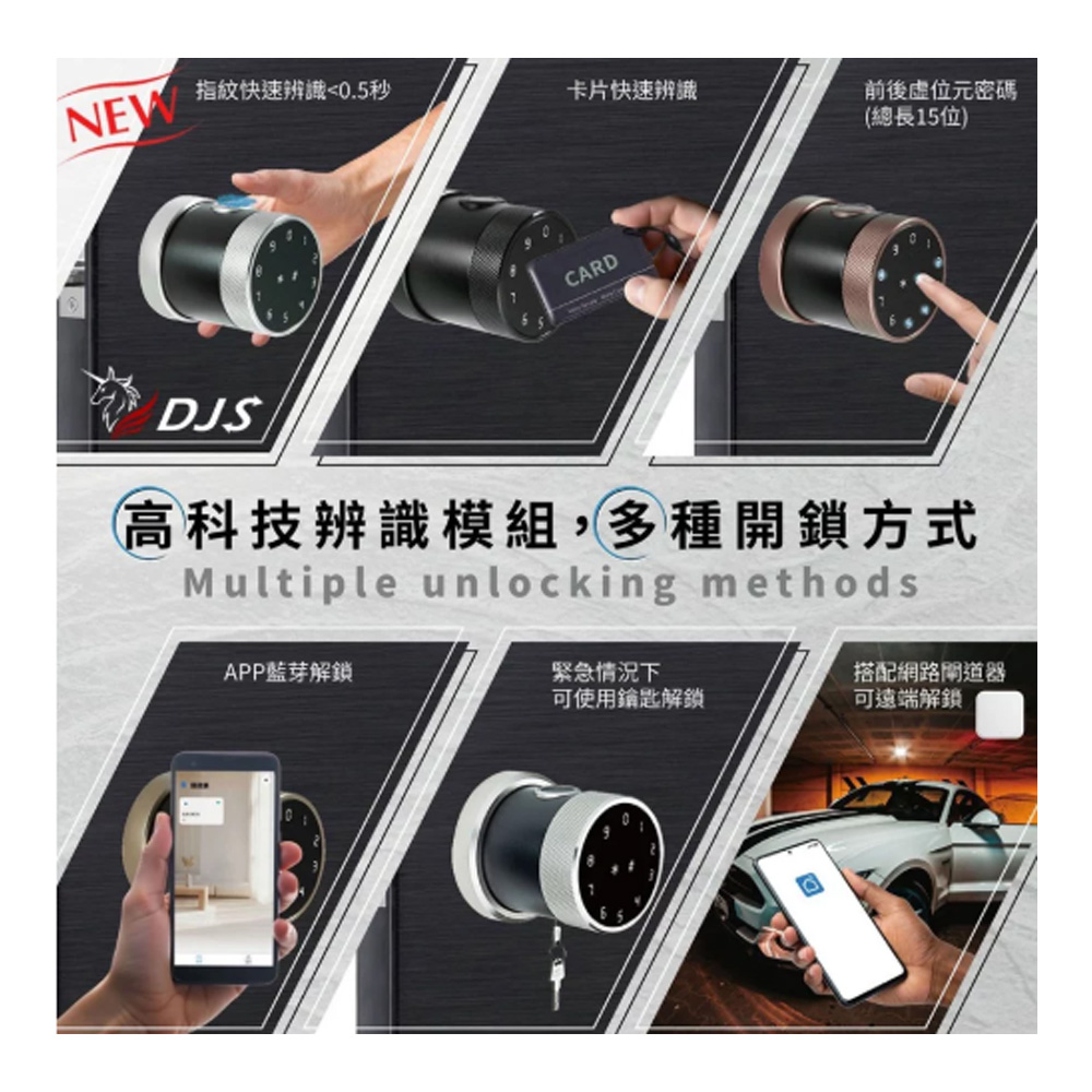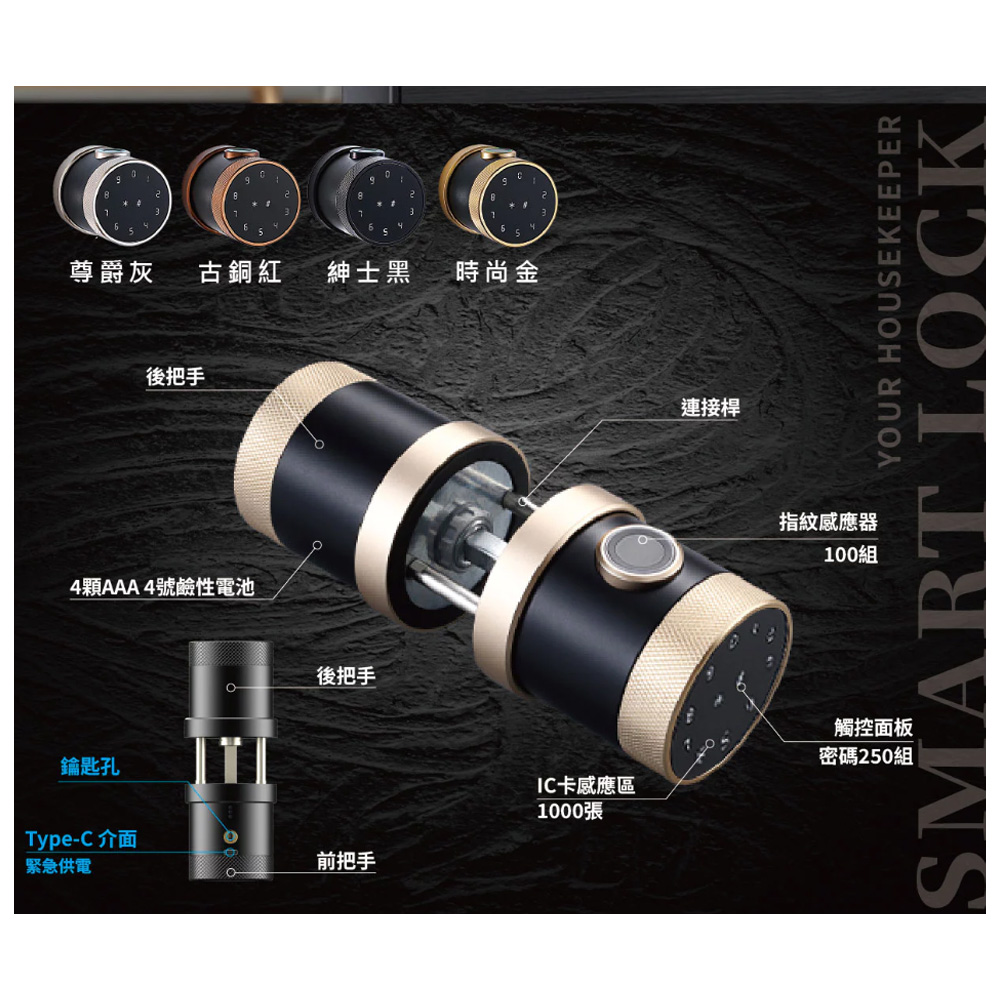 -指紋、密碼、鑰匙、藍牙、感應開鎖