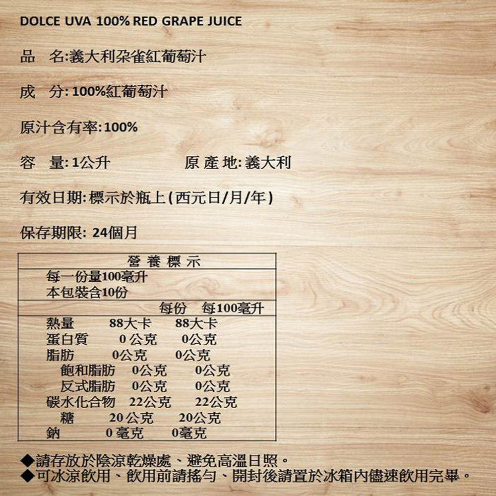 此商品為新鮮葡萄汁壓榨而成,有沉澱物屬正常現象,請安心食用