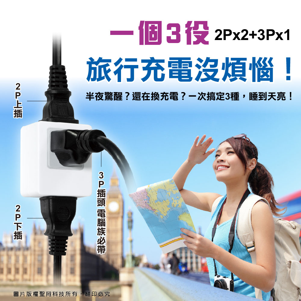 [寶旺旺]Dr.AV 聖岡科技 歐規大圓 3插(2P+3P)轉換插頭 UTA-2332