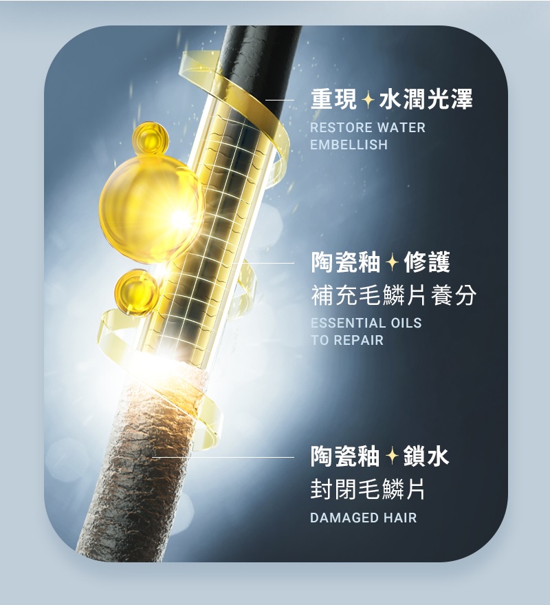 2億負離子,撫平毛躁使用好安心,15分鐘自動斷電安全設計3段溫控(160度、180度、200度),適應不同髮質防燙設計不燙手,任何人都能安心用陶瓷護髮燙片,讓髮絲能均勻受熱BSMI安全認證