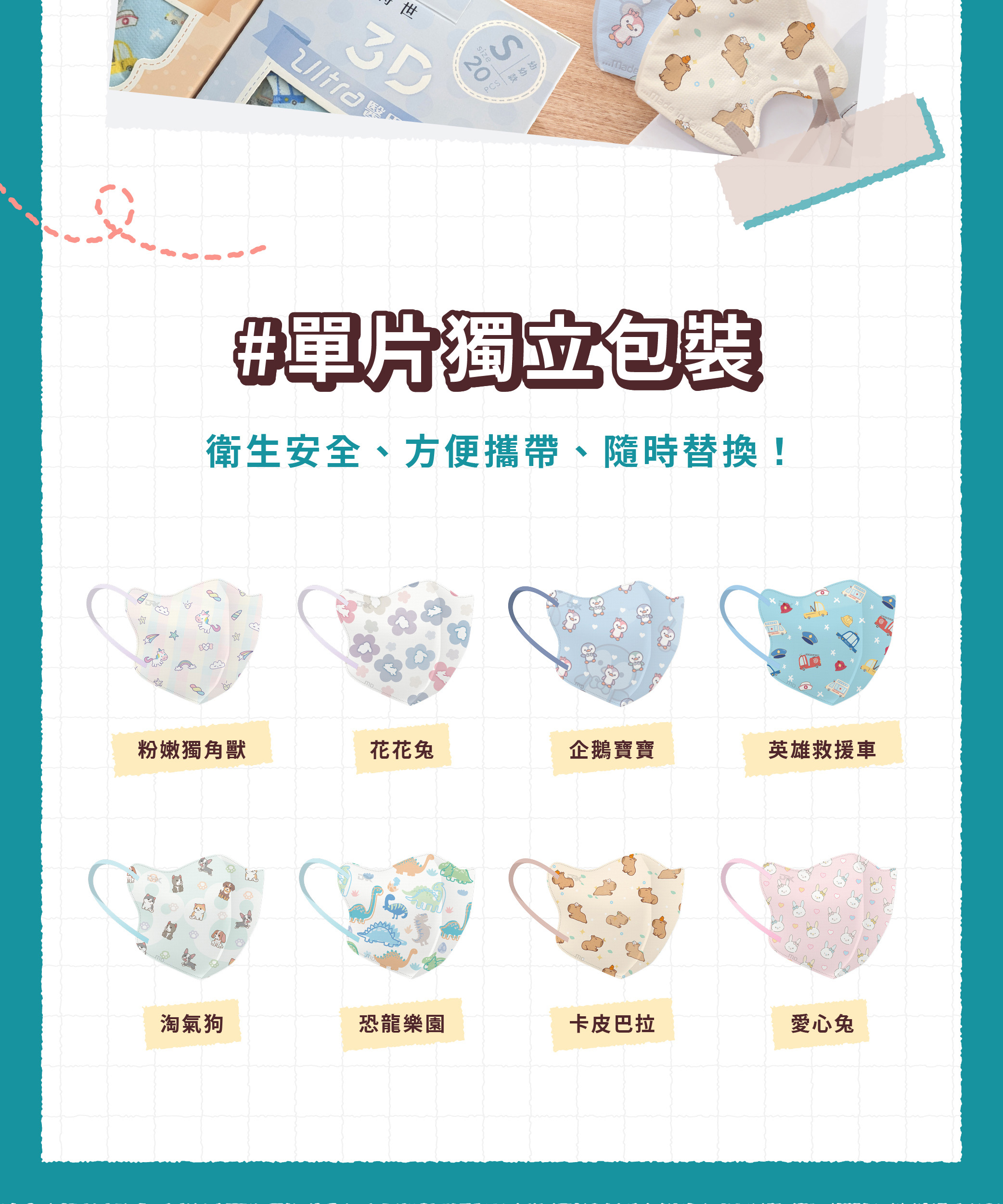 【DRX達特世】醫用3D Ultra口罩-卡皮巴拉 (20片),S (2-4歲)