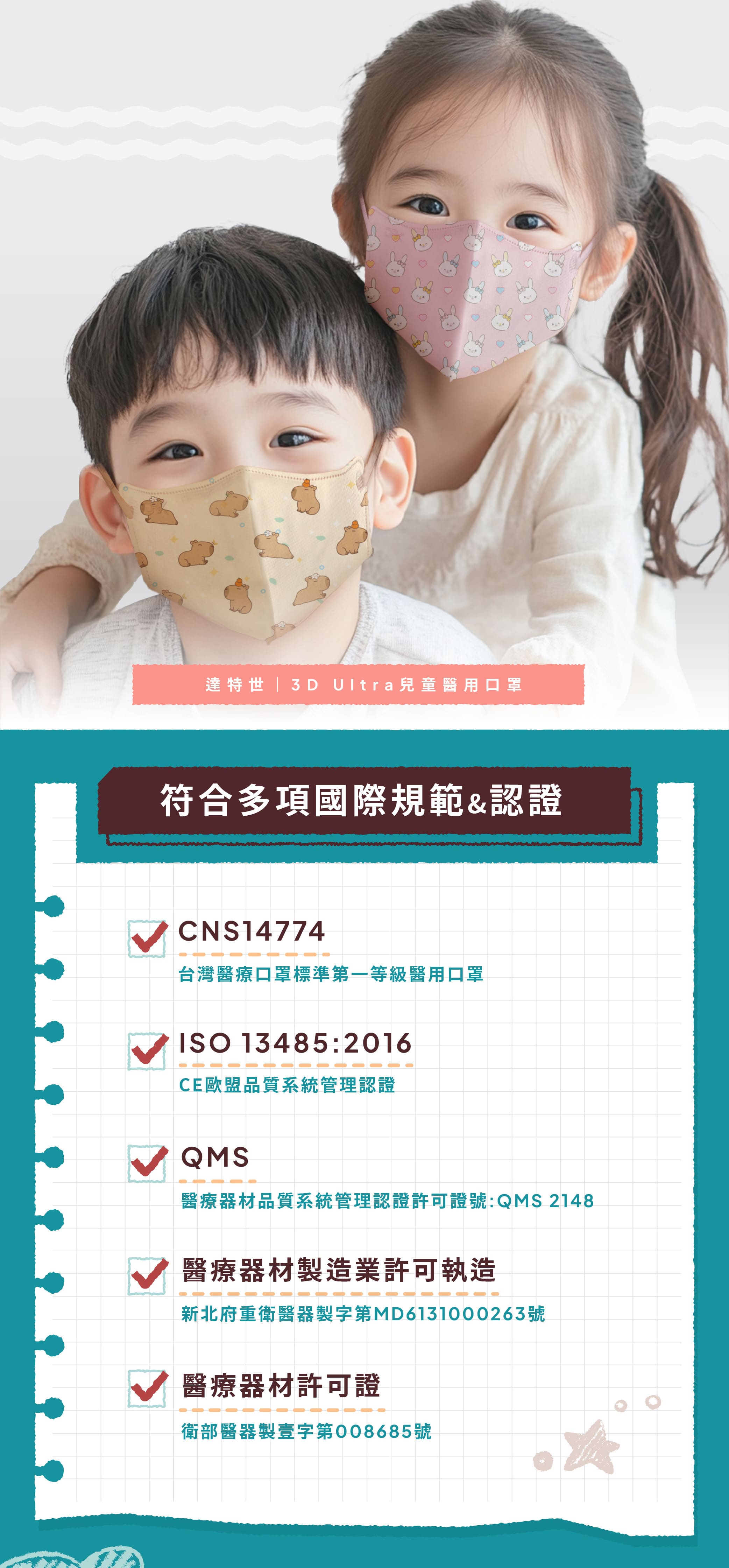 「消費者使用前應詳閱醫療器材說明書」●醫療器材品名: "達特世" 醫用口罩 (未滅菌)●醫療器材許可證字號:衛部醫器製壹字第008685號●許可證所有人:達特世生技有限公司●許可證所有人地址:新北市三重區溪尾街14號5樓●製造業者名稱:達特世生技有限公司●製造業者地址:新北市三重區溪尾街14號5樓之1及5樓之2●醫療器材商名稱:達特世生技有限公司●醫療器材商地址:新北市三重區溪尾街14號5樓●醫療器材商許可證字號:新北府重衛醫器販字第 MD6231017084 號●醫療器材商諮詢專線:02-22868689品牌:DRX 達特世規格:20入/1組貨源:自產自銷產地:台灣材質:不織布保存期限:5年「此商品屬個人衛生用品,不適用七天鑑賞期法規,拆封無猶豫期,如欲退貨請勿拆封。」