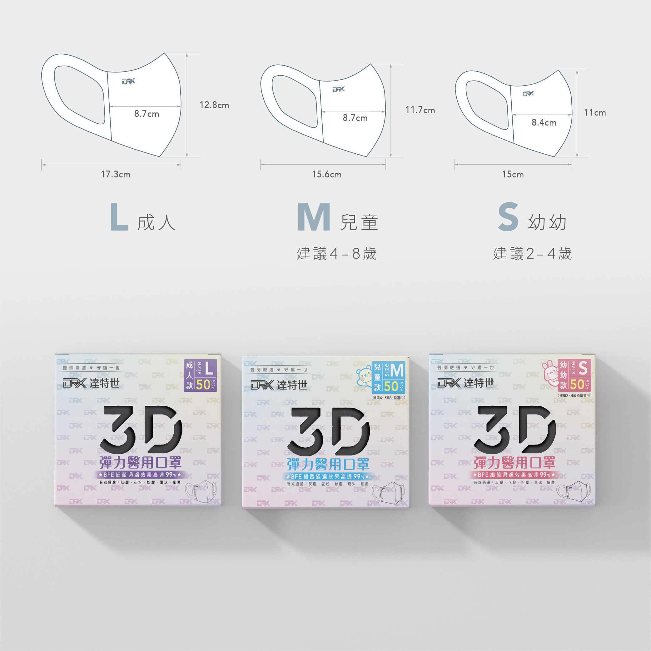 【DRX達特世】醫用3D彈力口罩-繽紛系列-成人L(50入)