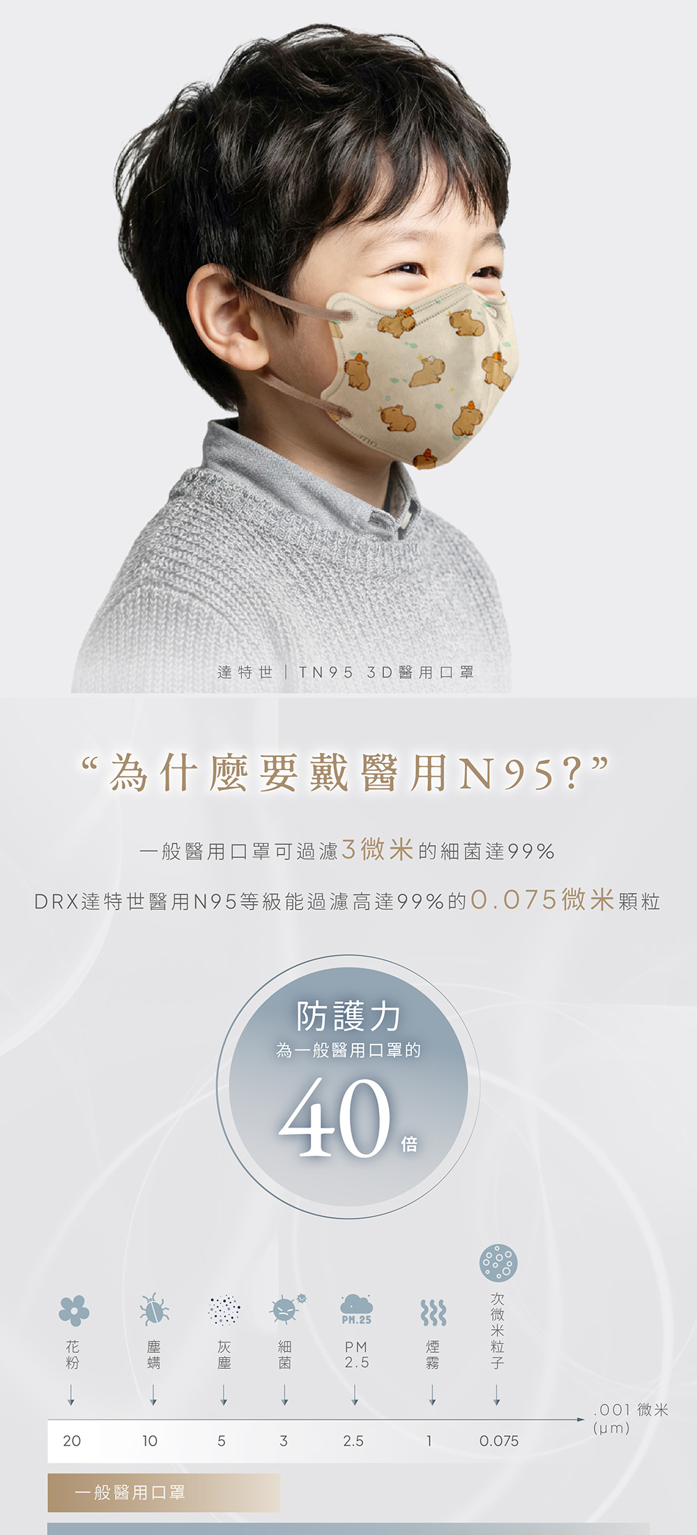 「消費者使用前應詳閱醫療器材說明書」●醫療器材品名:"達特世" TN95 醫用防護口罩 (未滅菌)●醫療器材許可證字號:衛部醫器製壹字第009814號●醫療器材品名:"達特世" D2醫用防護口罩 (未滅菌)●醫療器材許可證字號:衛部醫器製壹字第009265號●許可證所有人:達特世生技有限公司●許可證所有人地址:新北市三重區溪尾街14號5樓●製造業者名稱:達特世生技有限公司●製造業者地址:新北市三重區溪尾街14號5樓之1及5樓之2●醫療器材商名稱:達特世生技有限公司●醫療器材商地址:新北市三重區溪尾街14號5樓●醫療器材商許可證字號:新北府重衛醫器販字第 MD6231017084 號●醫療器材商諮詢專線:02-22868689品牌:DRX 達特世規格:10入/1組貨源:自產自銷產地:台灣材質:不織布保存期限:4年「此商品屬個人衛生用品,不適用七天鑑賞期法規,拆封無猶豫期,如欲退貨請勿拆封。」📌注意事項此款口罩為舊版D2外包裝,口罩材質與效能與TN95相同,請您安心購買🙏🏻通過 CNS 14774 / CNS 14755 測試標準TN95/D2 等級 等同於美國 N95的過濾效果TN95/D2 等級 等同於美國 N95的過濾效果TN95/D2 等級 等同於美國 N95的過濾效果給您更好的防護服務時間:周一至週五 09:00 ~ 18:00 (例假日、國定假日除外)假日不出貨,顏色及數量已當下實際庫存量為主,庫存量不足將另行通知!注意: 由於超商有寄貨限制,一筆訂單最多18盒 (如果超過18盒, 請分兩筆訂單下單)注意: 由於超商有寄貨限制,一筆訂單最多18盒 (如果超過18盒, 請分兩筆訂單下單)注意: 由於超商有寄貨限制,一筆訂單最多18盒 (如果超過18盒, 請分兩筆訂單下單)【商品資訊】●醫療器材品名:"達特世" TN95 醫用防護口罩 (未滅菌)●醫療器材許可證字號:衛部醫器製壹字第009814號●醫療器材品名:"達特世" D2醫用防護口罩 (未滅菌)●醫療器材許可證字號:衛部醫器製壹字第009265號●規格:10片/袋●尺寸:S幼幼:9.5cm x 8.5cm【建議1-4歲】M兒童:11.5cm x 9cm【建議4歲以上】●主要成分或材料:防潑水不織布、D2/N95 熔噴不織布、親膚性不織布●保存期限:4年●製造日期:2025.01.16●商品原產地:台灣●貨源:公司貨【醫療器材許可證】核定中文品名: "達特世" 醫用口罩 (未滅菌)核准字號:衛部醫器製壹字第008685號製造業者名稱:達特世生技有限公司製造業者地址:新北市三重區溪尾街14號5樓之1及5樓之2【販賣業醫療器材商許可執照】●許可執照字號: 新北府重衛醫器販字第 MD6231017084 號●醫療器材商名稱:達特世生技有限公司●地址:新北市三重區溪尾街14號5樓●諮詢專線電話:02-22868689【衛部醫器製壹字第009265號】●藥商:達特世生技有限公司●地址: 新北市三重區溪尾街14號5樓之1及5樓之1 ※每批布的顏色,略有色差,依實際出貨商品為主※※口罩屬個人衛生用品故經拆封後符合消保法第十九條所訂定之合理例外情事,無七日猶豫期,如欲退貨請勿拆封※