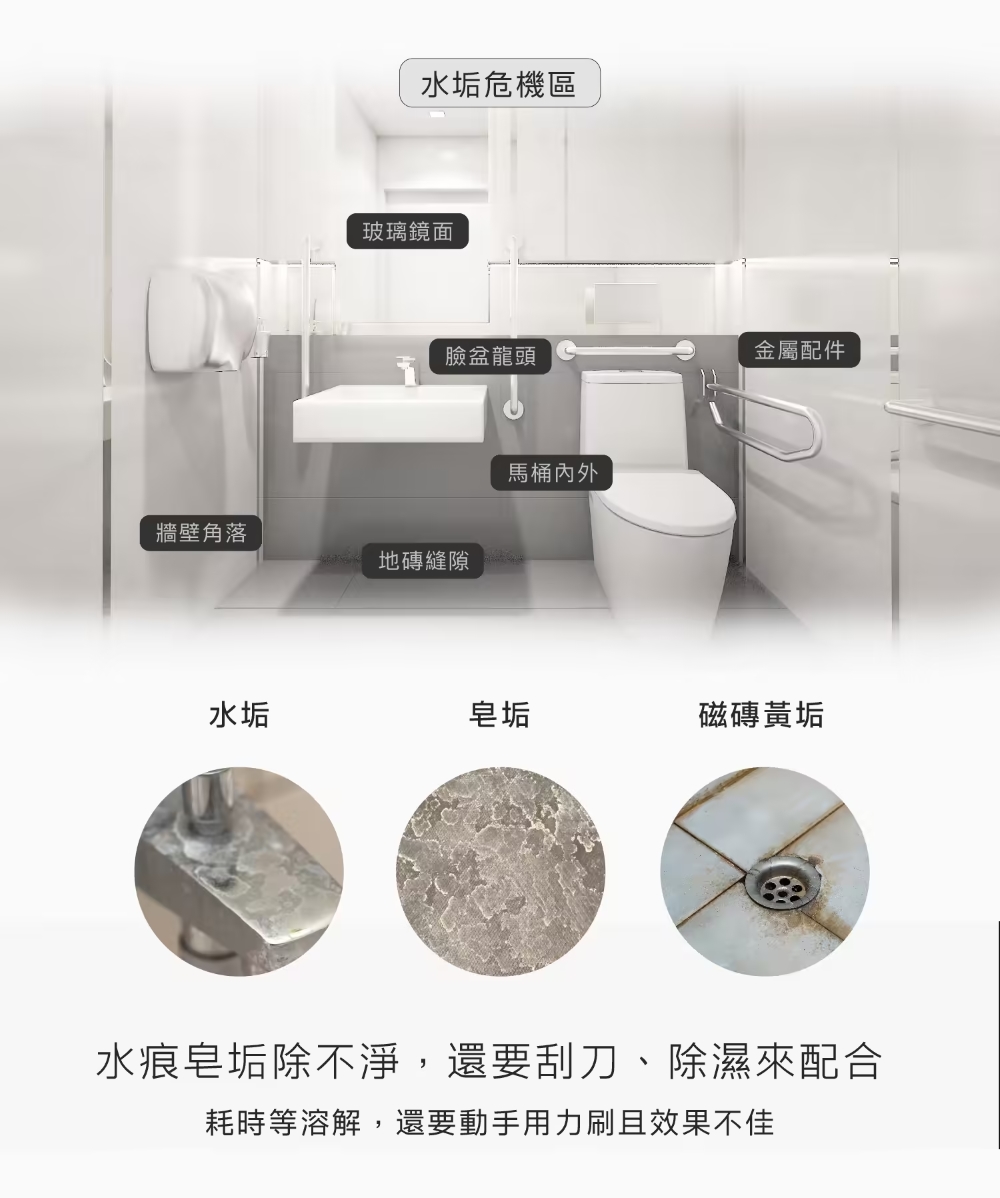 強效去垢|快速分解水痕、皂垢、玻璃水垢、馬桶污漬