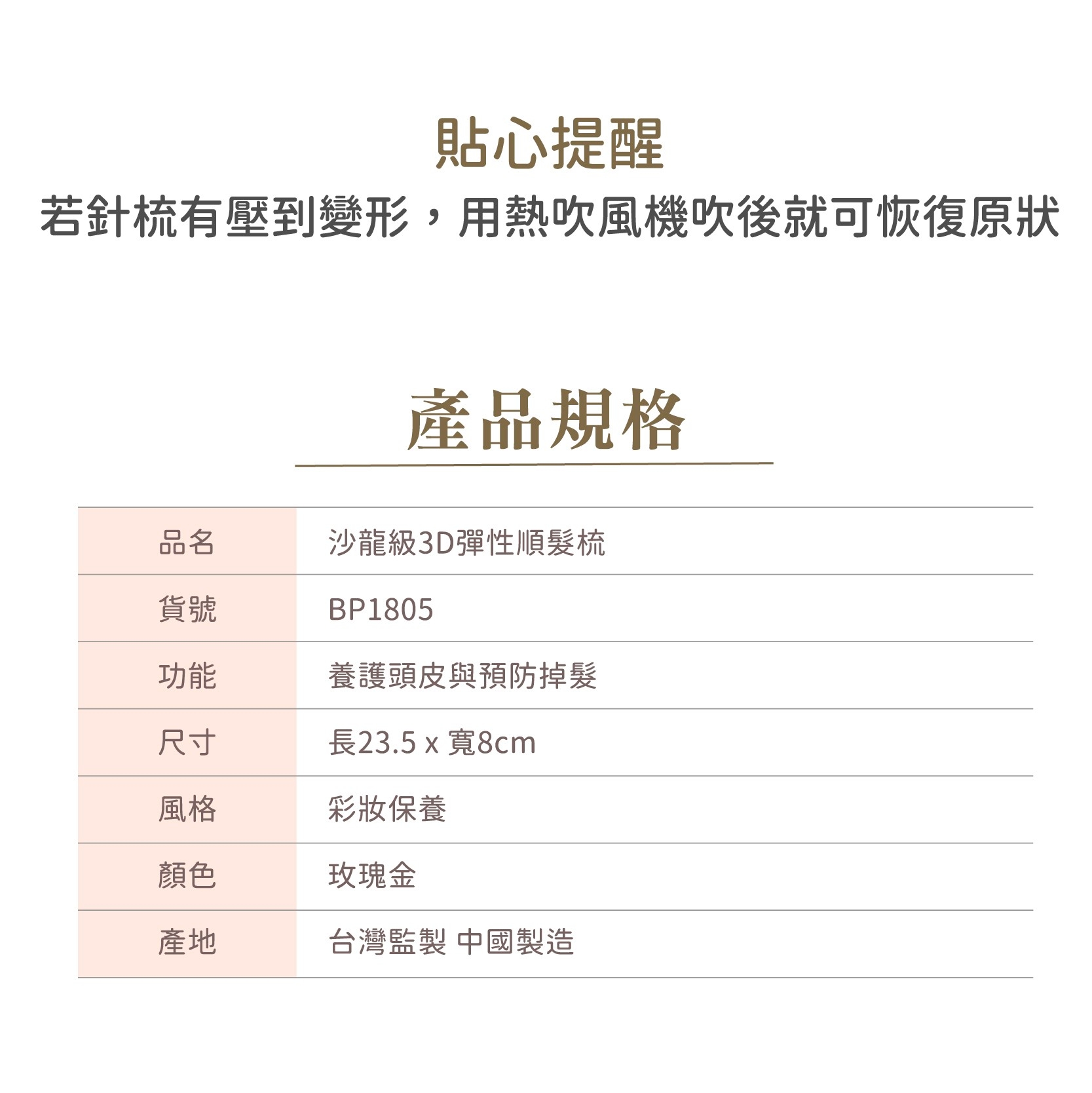 (*)記憶彈性梳齒,呵護每根髮絲,抗糾結不拉扯