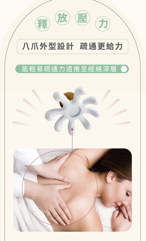 對於頭部、肩頸部、背部、腹部、腿部的疏導效果顯著。