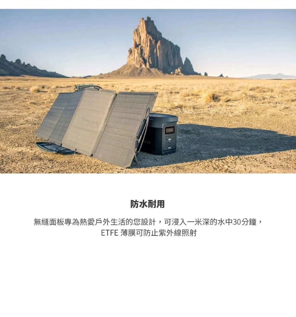 【EcoFlow 110W 單面便攜太陽能板】• 高效的單晶矽電池組成,可以為 Ecoflow 和您的電子設備充電,並在連接到我們的移動電源供應站時使您的設備運行不斷電。