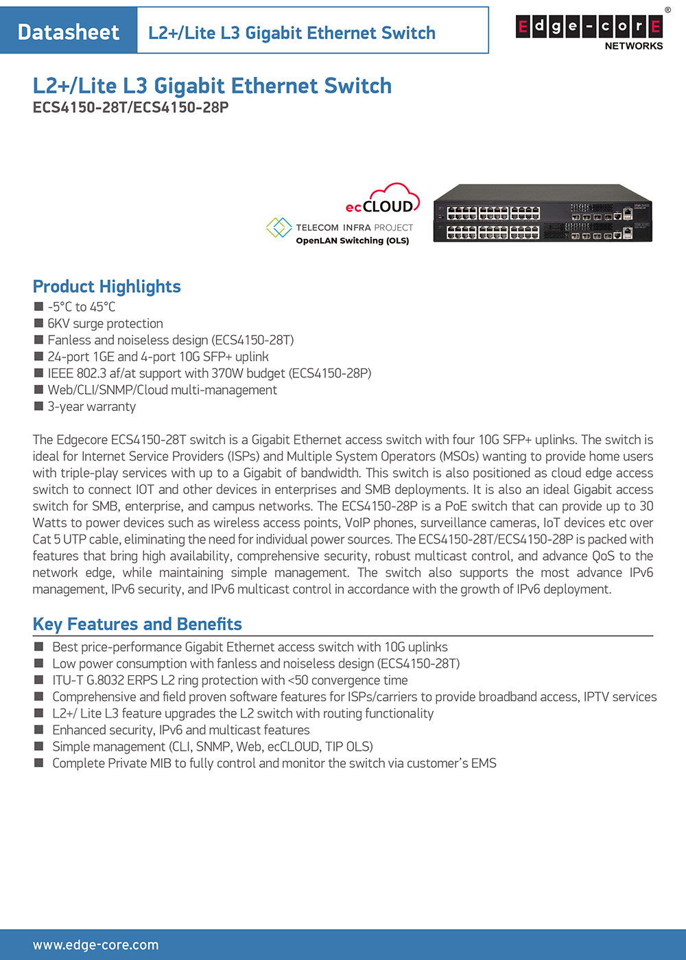 昌運監視器 Edge-corE Edgecore ECS4150-28T 千兆乙太網路存取交換器