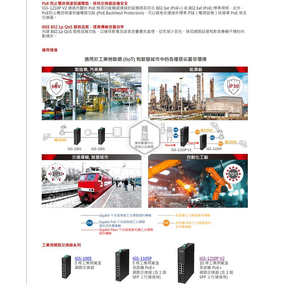 昌運監視器 EDIMAX 訊舟 IGS-1210P V2 10埠工業用寬溫長距離PoE+ 網路交換器