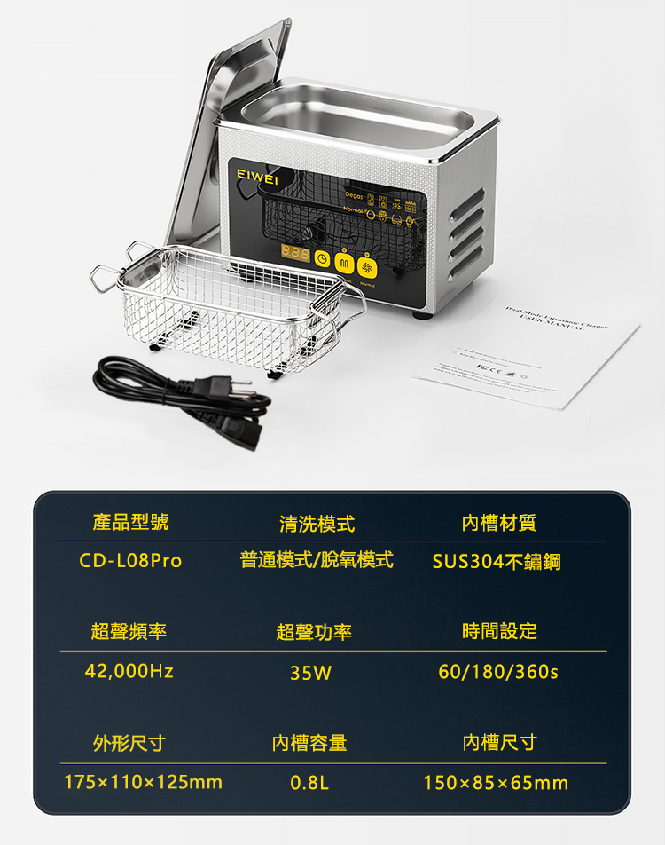 [創聯]EIWEI 觸控雙模式專用型超聲波清洗機