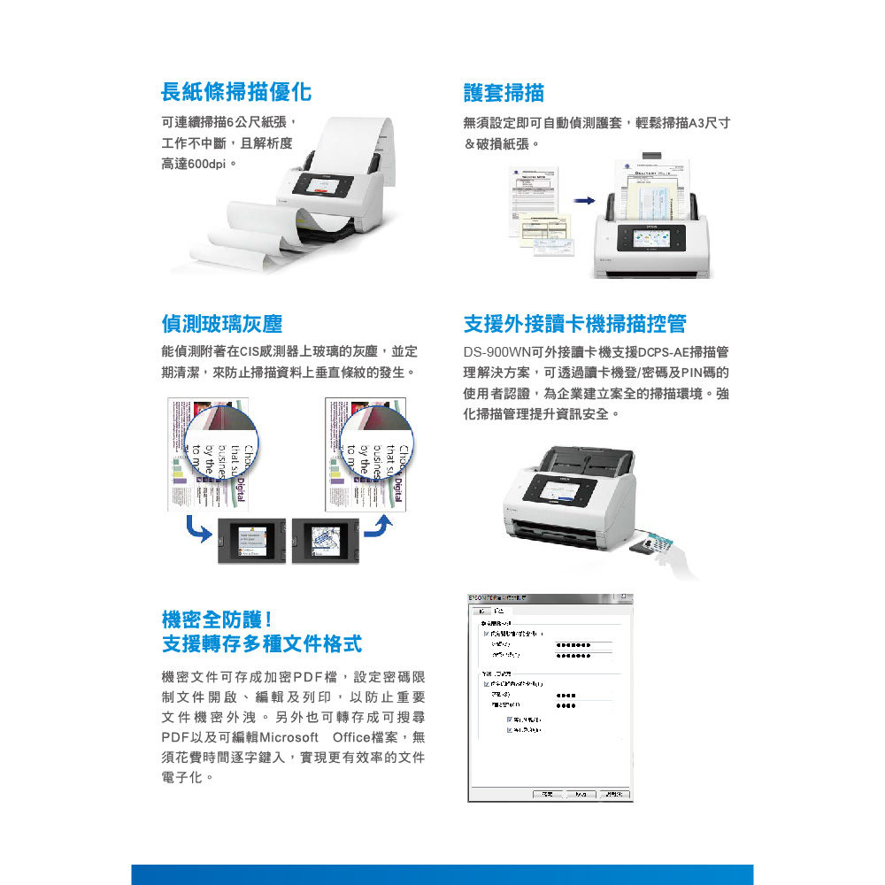 昌運監視器 EPSON 愛普生 DS-900WN A4高速旗艦文件掃描器 紙材支援更廣泛