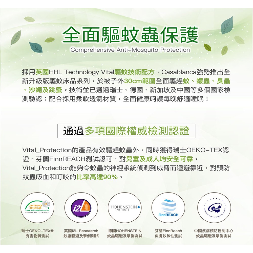 ◆ 非化學性驅蚊。◆ 英國獨特驅蚊技術配方。◆ 排濕快乾,親膚舒適。◆ 獨特驅蚊技術,給大家最安心的呵護。◆ 有效驅趕蚊子、塵螨、蠓蟲、臭蟲、沙蠅及跳蚤6大昆蟲。