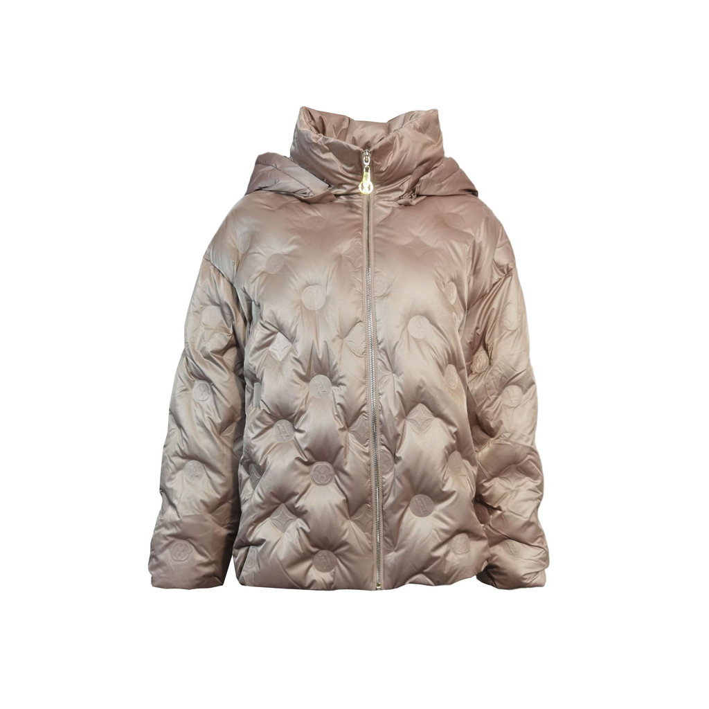 EVA香檳色壓紋連帽羽絨外套