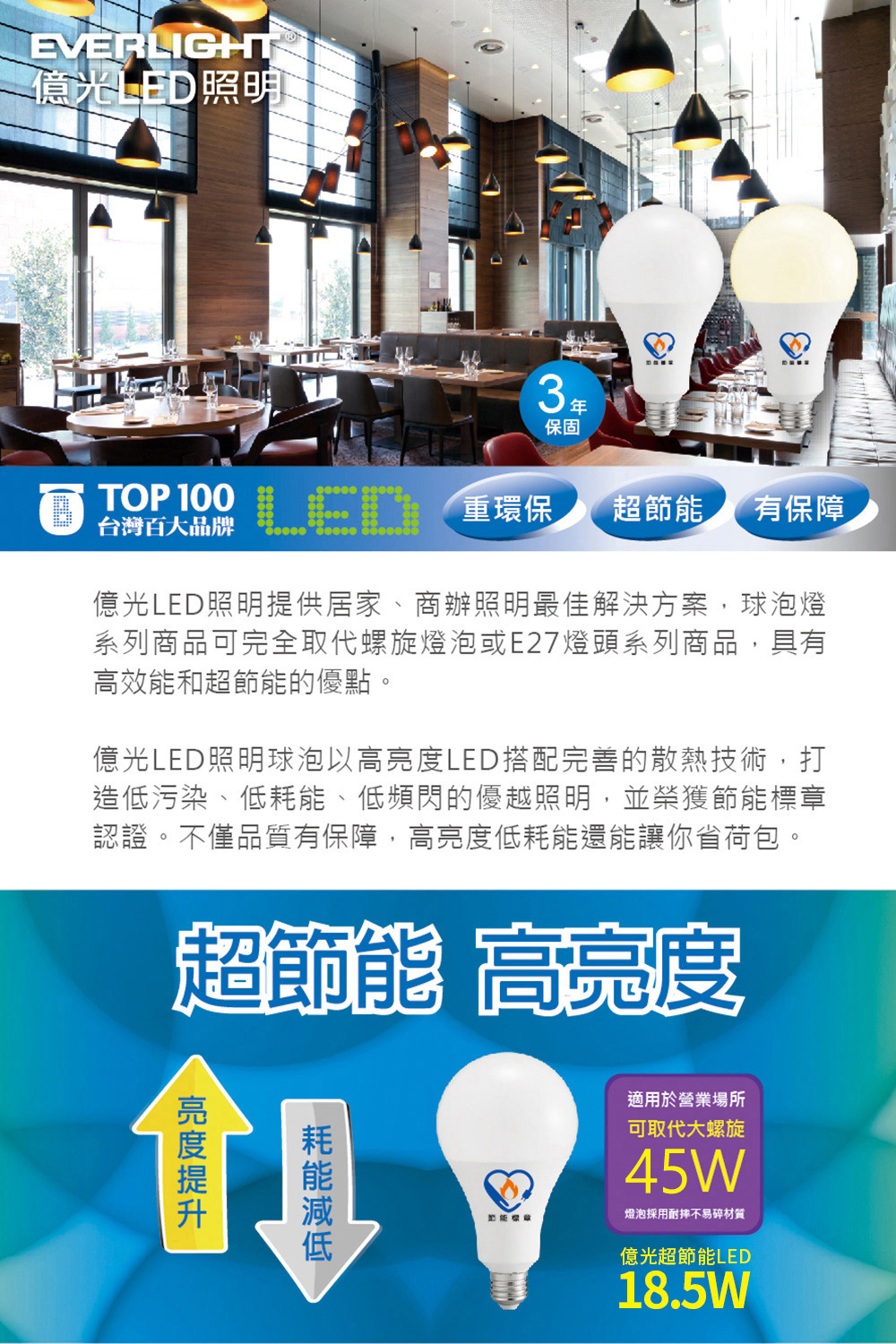 Everlight億光 18.5W LED超節能Plus燈泡 BSMI 節能標章(黃光)