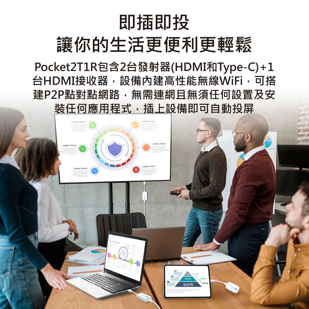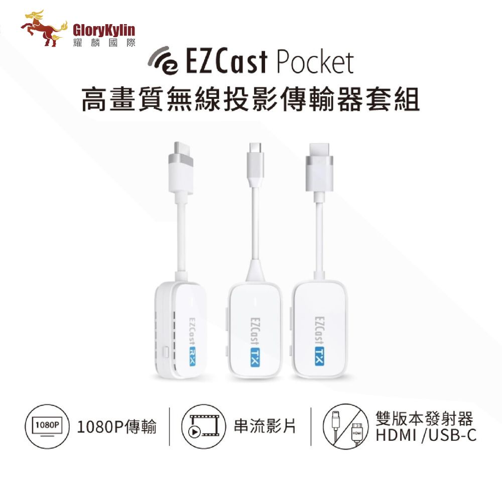 【耀麟國際】EZCast Pocket 2發1收 無線投影傳輸器套組 HDMI+TypeC (三件套)