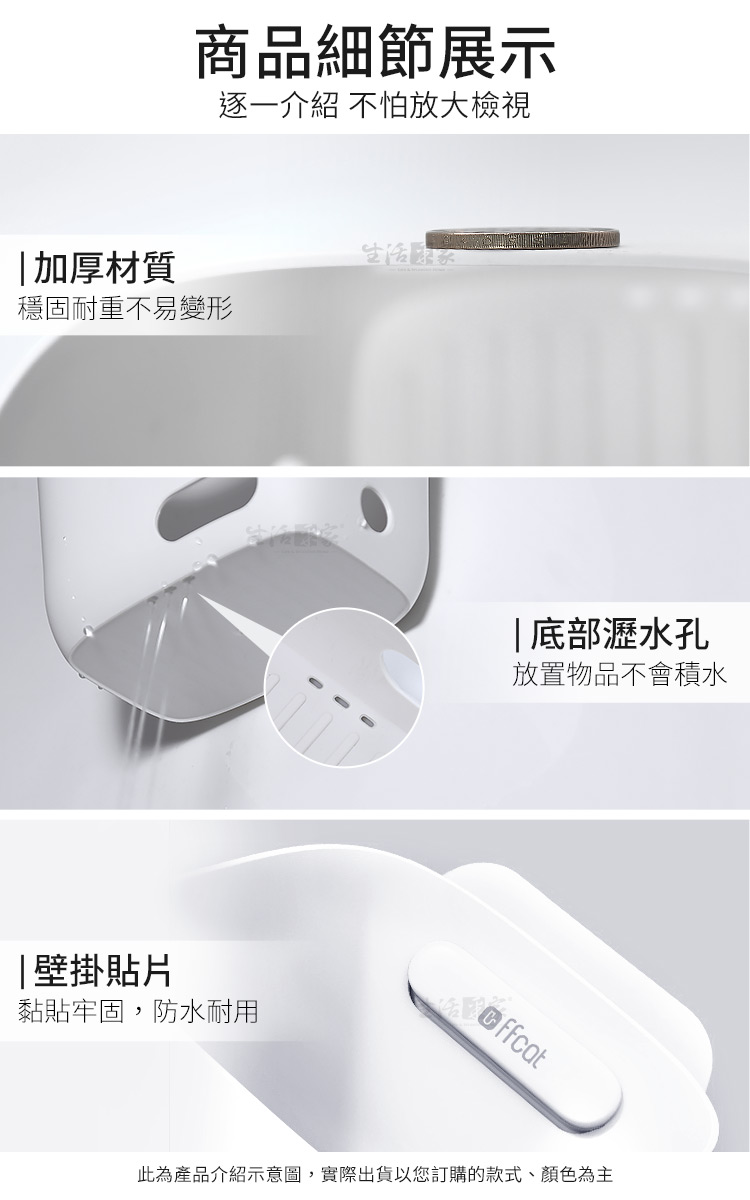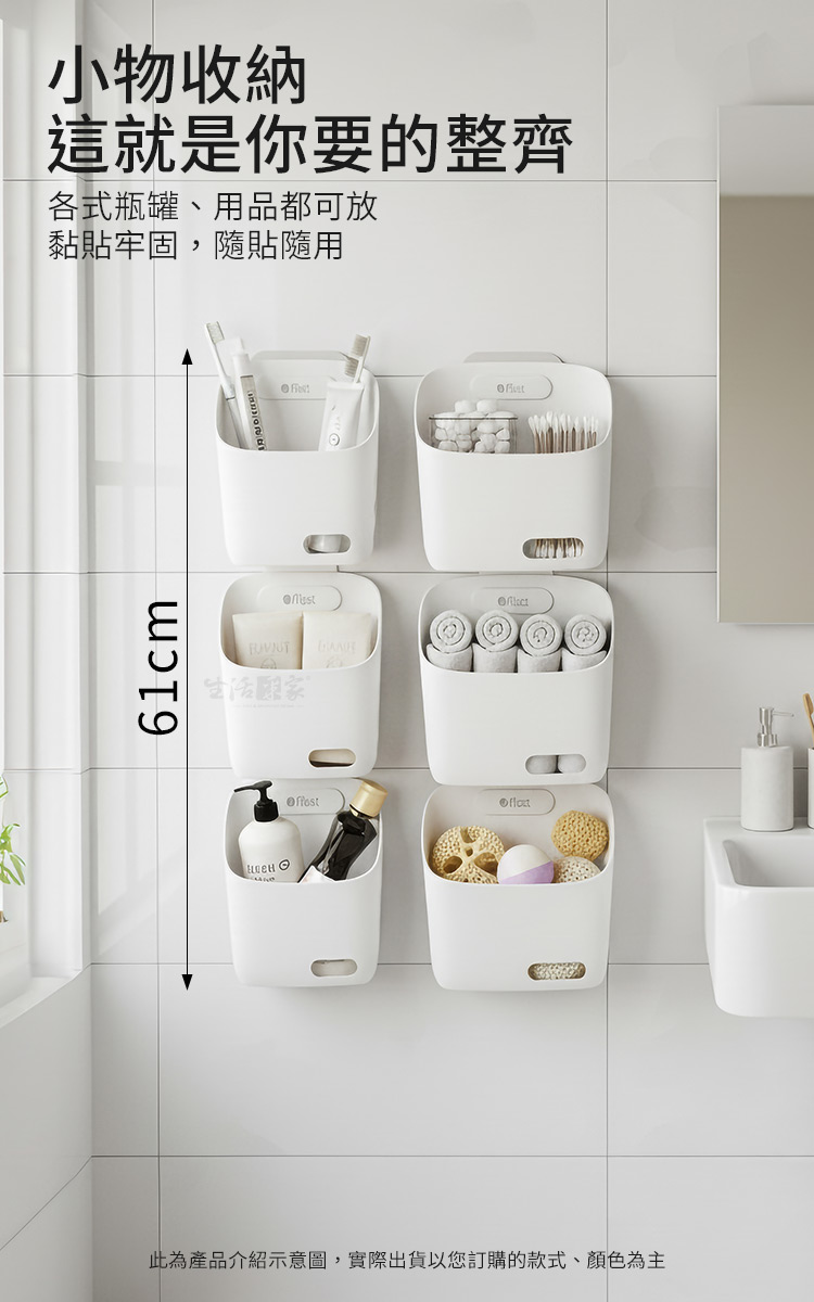 ffcat 強力無痕壁貼掛籃,看得見的整齊感洗手台擠滿了瓶罐?廚房流理台堆放著待處理的洋蔥蒜頭?連臥室裡的小物也總找不到家?空間不夠不是因為東西多,而是因為你沒利用好「牆面」。ffcat 強力無痕壁貼掛籃 是專為追求高效率與質感的你設計,透過系統化的垂直收納,讓凌亂瞬間歸零。🏠🛠️ 零修補免打孔:採用強力無痕貼片,即貼即用,不傷牆面,租屋族也能安心打造專屬收納牆。⛓️ 巧妙垂直串聯:獨創掛勾結構,可無限延伸向下串接。向上發展,節省橫向坪數,讓角落變身黃金收納區。🌬️ 極致通風細節:底部設有精密瀝水孔,側面與正面皆有透氣與識物孔,浴室使用不積水、廚房存放蔬果更保鮮。💪 加厚穩固耐用:視覺可見的加厚材質,耐重不易變形,即使放置沉重的沐浴乳或大顆蔬果依然穩如泰山。🧺 一物多用靈活性:它是掛籃,也是手提籃,更能直接平放於桌面,隨心應對各種生活情境。✅ 使用後你會發現...浴室乾爽了: 瓶罐不再底部發霉,備用毛巾井然有序。🛀環境清爽了: 物品不再放的亂七八糟,通風存放讓空間更整潔。🥕心情舒坦了: 視覺上的整齊直接提升生活品質,找東西不再心煩意亂。✨️ 收納,就是對生活的投資不需要昂貴的裝潢,只要一組 ffcat 強力無痕壁貼掛籃,就能讓家裡煥然一新。現在就開始你的空間革命,把凌亂留給過去,把舒心還給自己!🛒#居家收納 #免打孔收納 #垂直空間利用 #租屋族救星 #收納美學📣 FAQ (常見問答)Q1:無痕貼片會容易掉落嗎?A1:本產品採用高強度防水無痕貼,針對磁磚、玻璃等光滑牆面有極佳抓力,正確黏貼並靜置後非常牢固。Q2:這個掛籃可以承裝重物嗎?A2:產品採用加厚材質,且掛勾結構經過強化,放置大瓶裝沐浴乳、洗髮精或重磅蔬果皆沒問題。Q3:串聯後會不會晃動?A3:掛籃背面設有固定結構,串聯時能保持高度穩定,垂直受力設計確保整體重心平衡。Q4:底部有孔洞,放在臥室裝襪子會漏嗎?A4:底部的瀝水孔細小且分布均勻,收納襪子、內衣或小物等不會掉落,且能保持通風避免異味。Q5:可以更換掛籃的順序嗎?A5:可以的,串聯設計非常靈活,您可以根據使用習慣隨時調整掛籃的層次或單獨拆卸使用。注意事項:1.請確保安裝於乾燥、平整且光滑的表面(如磁磚、玻璃、金屬板)。2.貼上無痕貼片後,建議先靜置 24 小時待膠體完全固化後再掛上籃子。3.雖然材質加厚,但建議不要超過產品設計的額定負重,以維持長久使用。4.可直接用水沖洗或濕布擦拭,請避免使用具腐蝕性的化學清潔劑。5.串聯多組時,請確保最上層的壁貼基座安裝穩固,以分擔整體重量。