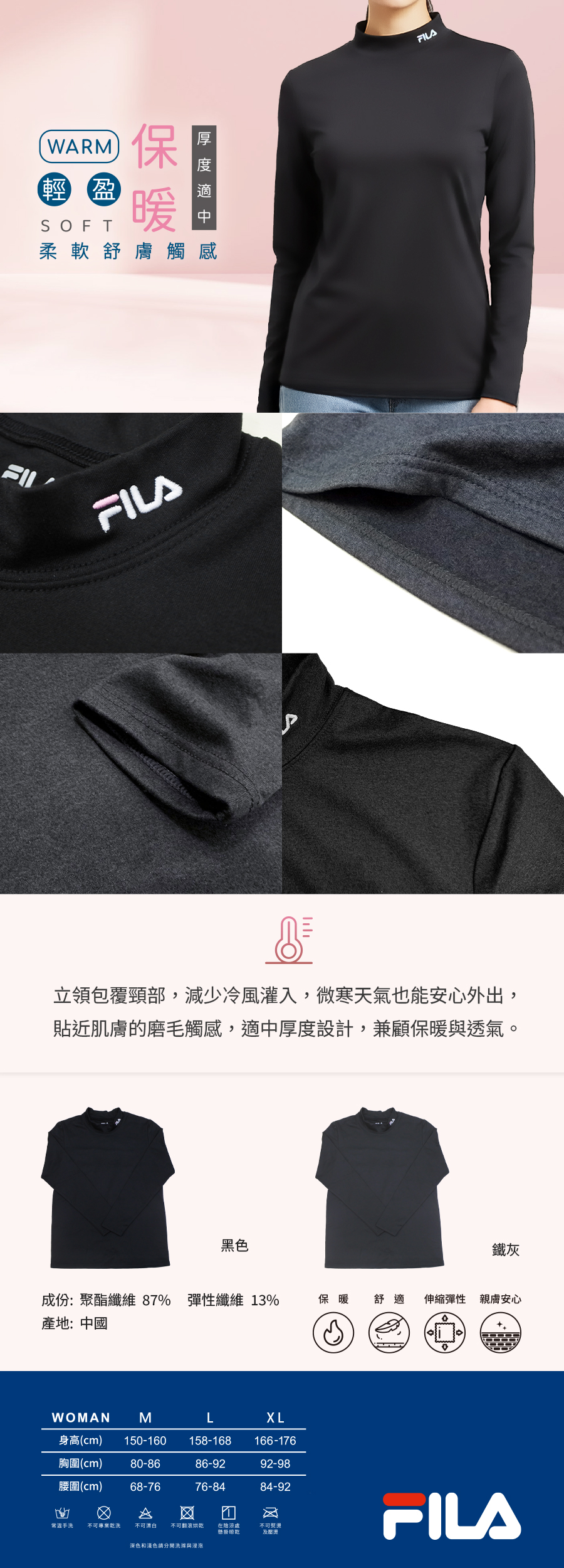 FILA女冬日暖感立領長袖-M(顏色隨機出貨)