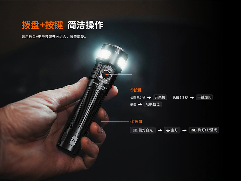 (3).使用CR123A一次性鋰電池時,無法點亮極亮檔,且爆閃檔亮度為800流明,電量顯示與低壓顯示無效。