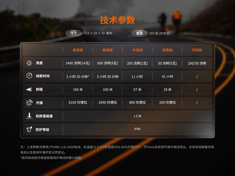 (以下為原廠提供參考數據,非絕對)品名:FENIX BC22R高性能公路自行車燈型號:#BC22R