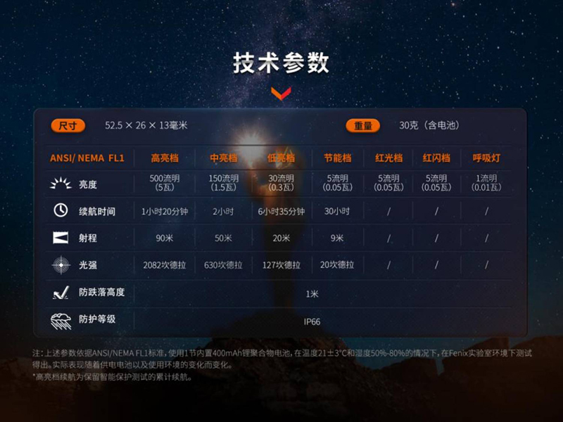 (以下為原廠提供參考數據,非絕對)品名:FENIX E03R V2.0 全金屬鑰匙圈手電筒型號:E03R V2.0