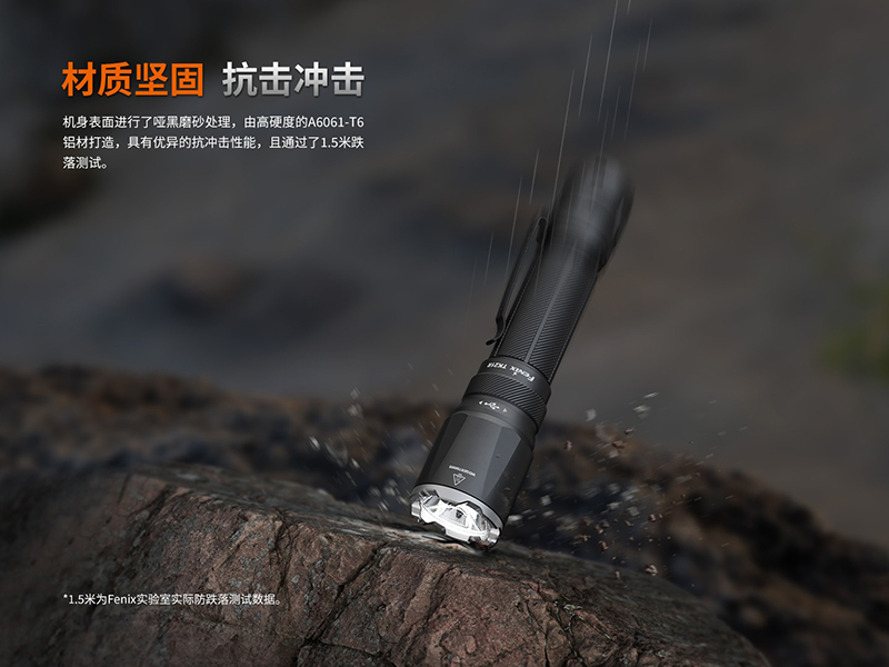 ◎最高亮度3600流明,最遠射程480米◎使用1顆Luminus SFT90 LED,壽命50000小時◎標配1節Fenix ARB-L21-6000可充電鋰離子電池◎採用APF先進脈衝頻率傳輸系統,盡顯戰術優勢◎戰術雙尾按控制,快速實現一觸即亮和一鍵爆閃◎機身隱藏式Type-C介面,充電迅速◎內部雙彈簧結構,劇烈衝擊下依舊穩定照明◎採用A6061-T6鋁合金材質製造◎表面進行了HAIII硬質陽極氧化抗磨處理◎尺寸 (±10%):153.5(筒長)×36(筒頭)×25.4(筒身)毫米◎重量 (±10%):221.4克(含電池)