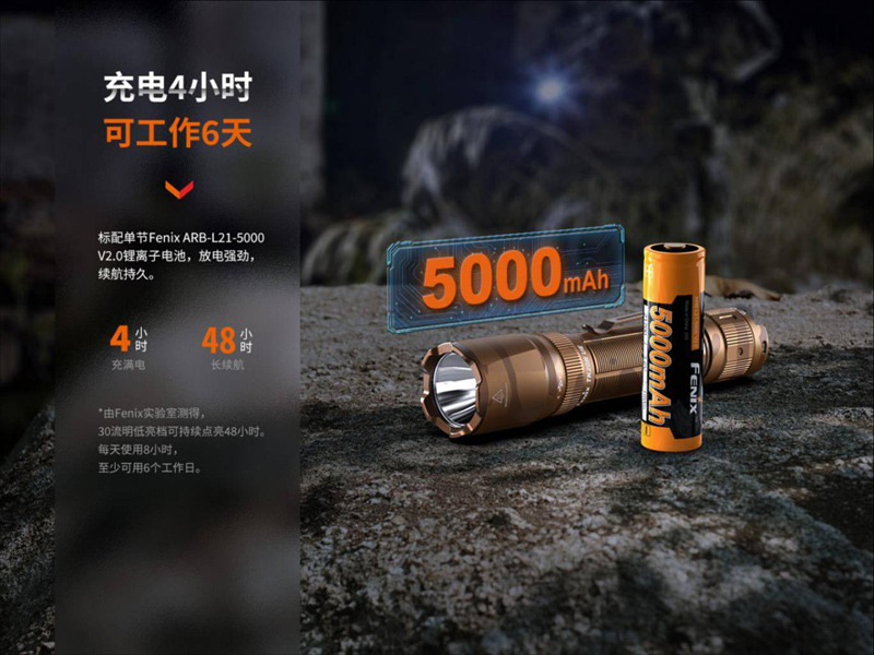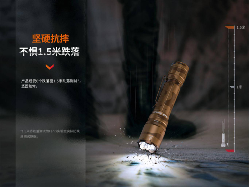 ◎最高亮度2800流明,最遠射程465米◎使用1顆Luminus SFT70 LED,壽命50000小時◎標配1節Fenix ARB-L21-5000 V2.0鋰離子電池◎訂制迷彩塗裝,不銹鋼鍍鈦攻擊頭◎FlexiSensa Control專利多功能靈感撥盤,調光換檔一手掌握◎戰術勤務雙模式隨時切換,兩段式戰術開關,可實現戰術點亮和換擋功能◎機身隱藏式Type-C介面,充電快速◎採用航空鋁材製造◎表面進行了HAIII硬質陽極氧化抗磨處理◎尺寸(±10%):153.7(筒長)×34(筒頭直徑)×25.4(筒身直徑)毫米◎重量(±10%):135克(不含電池)