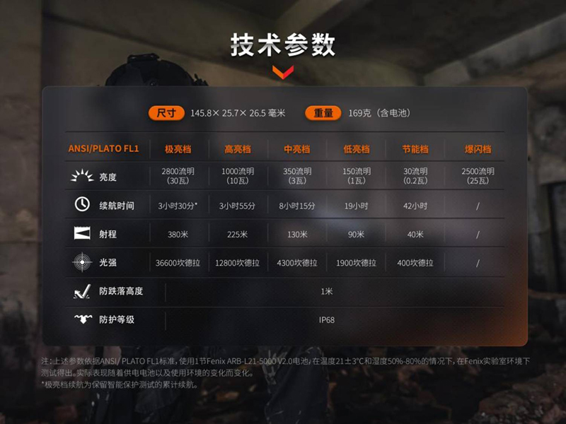 (以下為原廠提供參考數據,非絕對)品名:FENIX PD36R PRO高性能充電戰術小直筒型號:#PD36R PRO