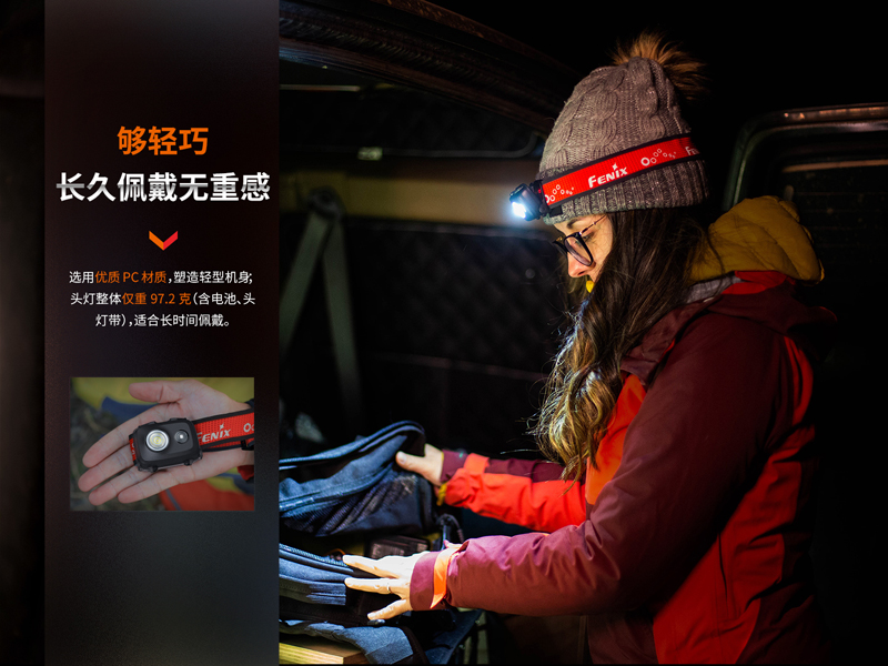 ◎最高亮度450流明,最遠射程104米◎使用1顆Luminus SST20 白光、2835紅光LED,壽命50000小時◎標配3節AAA(4號)電池,電池易於更換◎紅、白雙光源,滿足多種照明需求◎雙按鍵設計,操作簡單快捷◎60°調節,自由調整照明角度◎加寬鏤空反光頭燈帶,穩固舒適,排汗透氣,安全提示◎電子鎖鍵/解鎖功能,防止誤按點亮◎採用優質PC材質,輕量耐磨◎尺寸(±10%):64(長)x 48(寬)x 27(高)毫米◎重量(±10%):97.2克(含電池)