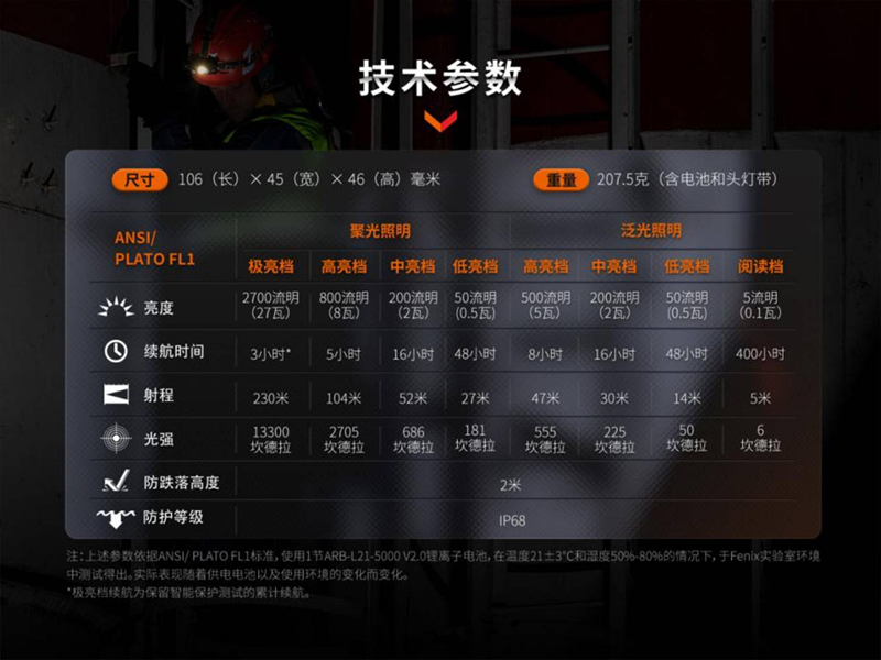 (以上與下為原廠提供參考數據,可能有誤差值,非絕對)品名:FENIX HM71R 高性能多用途工業頭燈型號:#HM71R