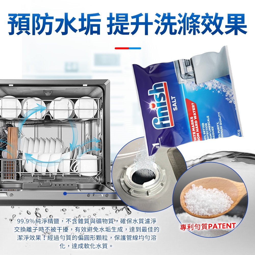 [finish 亮碟] 洗碗機零添加洗碗凝珠100顆+洗碗機專用軟化鹽軟水鹽1kg(2入組)