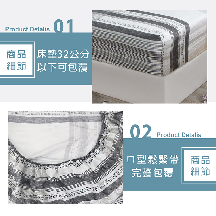 【雙人】床包*1件-5x6.2尺(152x188cm)、薄枕套*2個 (48x75cm)