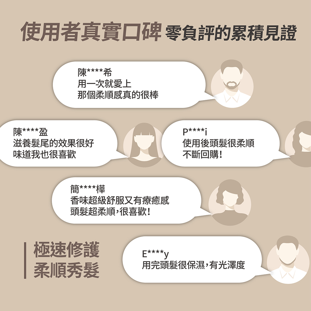 依個人頭髮狀態需要,建議可每天「洗髮+潤髮」的方式來保養。若是頭髮受損或需要深層保養時,建議厚塗再以浴帽包裹靜置15分鐘之後洗去,即可達到深層護理效果!