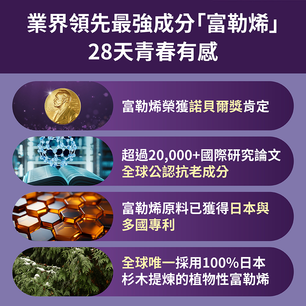➤足量添加諾貝爾級抗老成份「L.F.™富勒烯」