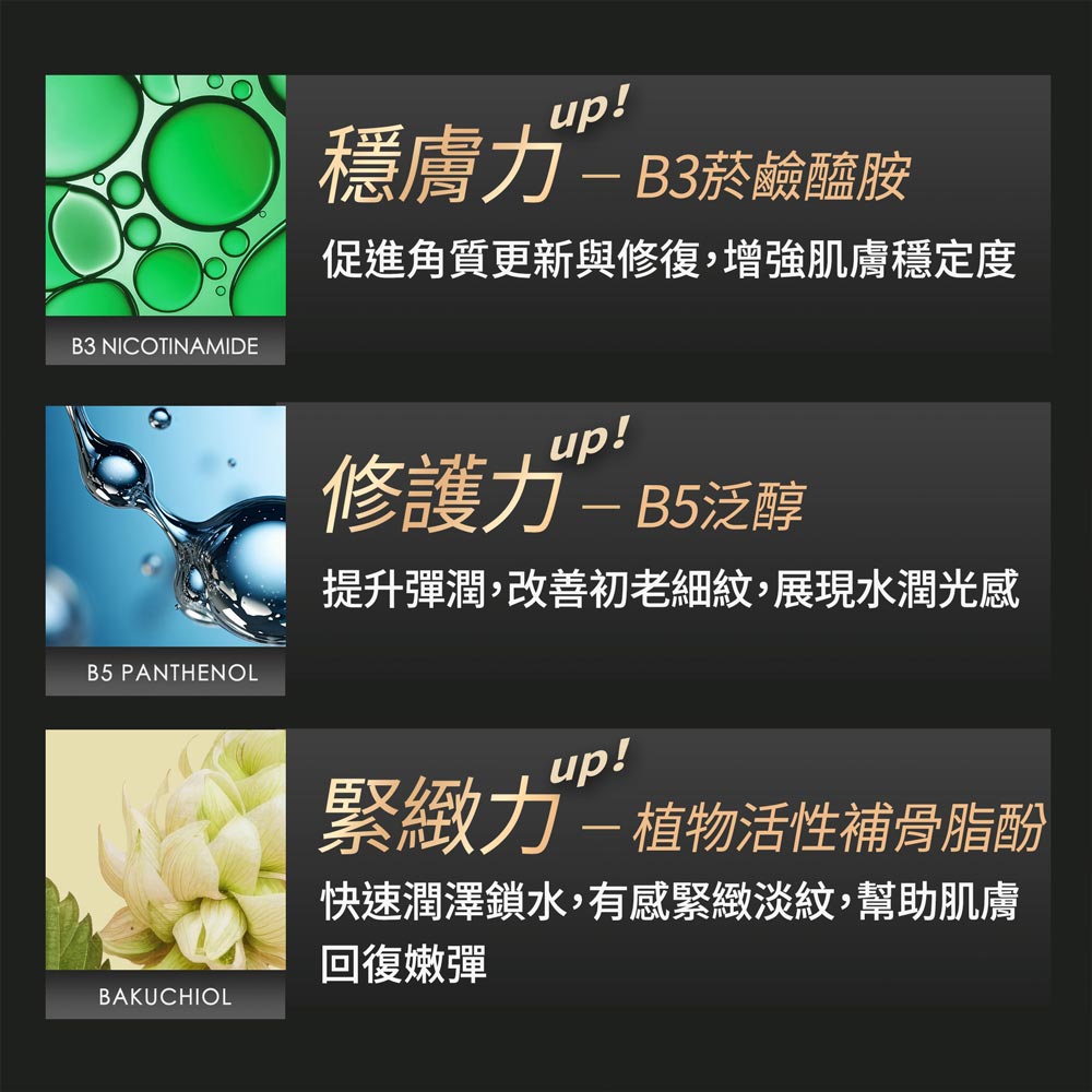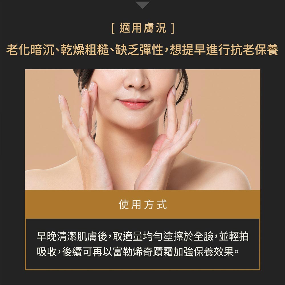 產品功效:抗老緊緻、補水控油,提升後續保養品吸收效果產品特色:添加天然抗老明星成分【補骨脂酚】,具高效緊緻肌膚、淡化臉上細紋效果,提升整體保水度、調節油脂分泌,增強皮膚的屏障功能,對抗環境變化引起的乾燥不適與敏感。