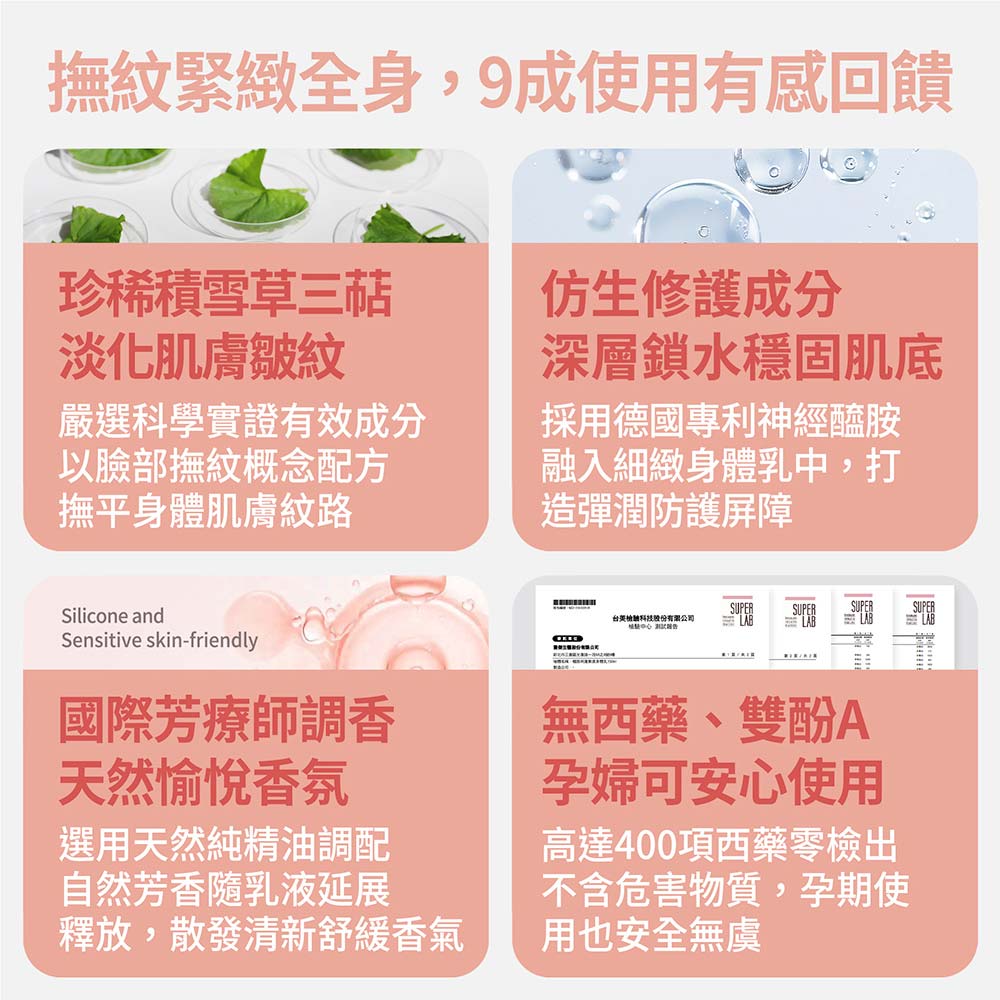 極致呵護無痕身體乳堅持使用最溫和及修護力高的成分,就連孕媽咪也可以安使用喔~