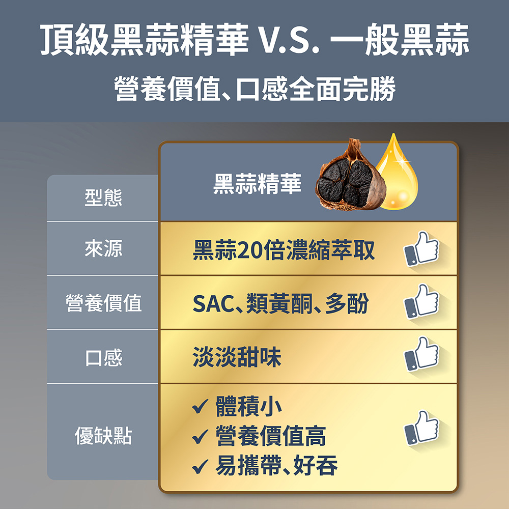 發酵後的黑蒜會保留大蒜原有營養成分,且透過製程營養素分子變小且濃縮,同時產出生蒜沒有的新成分“ S-烯丙基半胱氨酸”(S-Allyl-L-cysteine)。