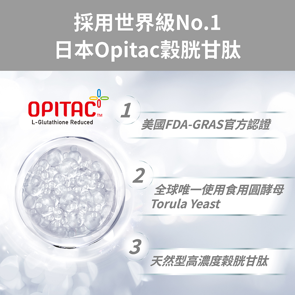 Q1.穀胱甘肽是什麼?有什麼好處?穀胱甘肽(Glutathione)可簡稱為GSH,是由麩胺酸、半胱胺酸和甘胺酸等3種胺基酸所構成的三胜肽,是我們身體與生俱來的重要元素,也是調節生理機能的關鍵,幫助養顏美容。Q2.一天最多可以吃多少呢?多吃幾顆會不會效果更好呢?依據食品衛生管理法規定,使用圓酵母(Torula yeast)發酵製成之穀胱甘肽,每日食用限量為250毫克,因此多食無益喔!Q3.食用穀胱甘肽有什麼禁忌或副作用嗎?1.對穀胱甘肽過敏者、孕婦哺乳者及嬰幼兒應避免食用。 2.18歲以下及肝腎功能不佳者不建議食用。Q4.生理期可以食用穀胱甘肽嗎?是可以的喔!因為產品成分單純,為圓酵母自然萃取穀胱甘肽,因此可以安心使用。Q5.穀胱甘肽什麼時候吃?晚上吃可以嗎?養顏美容,可以早餐後搭配溫開水食用;幫助入睡及促進新陳代謝,可以睡前搭配溫開水使用喔!Q6.穀胱甘肽要吃多久才有感,要長期食用嗎?相關研究指出,連續補充至少4週,幫助養顏美容的調理。保健品食用感受每個人都不同,建議持續補充1-3個月。---------------------------------------------------------------【使用方式】每日1顆,飯後或睡前搭配溫開水使用,多食無益。【產品功效】養顏美容、幫助新陳代謝。榮獲FDA-GRAS認證、符合衛福部規定唯一來源、維生素C 1+1>2效果超加乘、吃的保養品,養顏美容【產品特點】✔ 每日1顆,飯後或睡前搭配溫開水使用。✔ 日本專利圓酵母來源✔ 符合衛福部規定唯一來源✔ 榮獲FDA-GRAS認證✔ 吃的保養品,養顏美容✔ 維生素C 1+1>2效果超加乘✔ 促進新陳代謝【主要成分】穀胱甘肽、維生素C、玉米澱粉、微結晶狀α-纖維素、硬脂酸鎂【商品規格】容量規格: 500毫克/顆;30顆/袋保存期限: 3年貨源: 公司貨產地: MIT劑型:膠囊【注意事項】1. 對穀胱甘肽過敏者、孕婦哺乳者及嬰幼兒應避免食用。2.18歲以下及肝腎功能不佳者不建議食用。